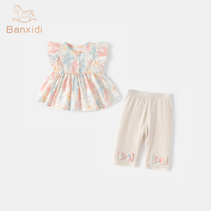 班喜迪女童夏装套装新款洋气女宝宝公主上衣薄款裤子夏季儿童衣服