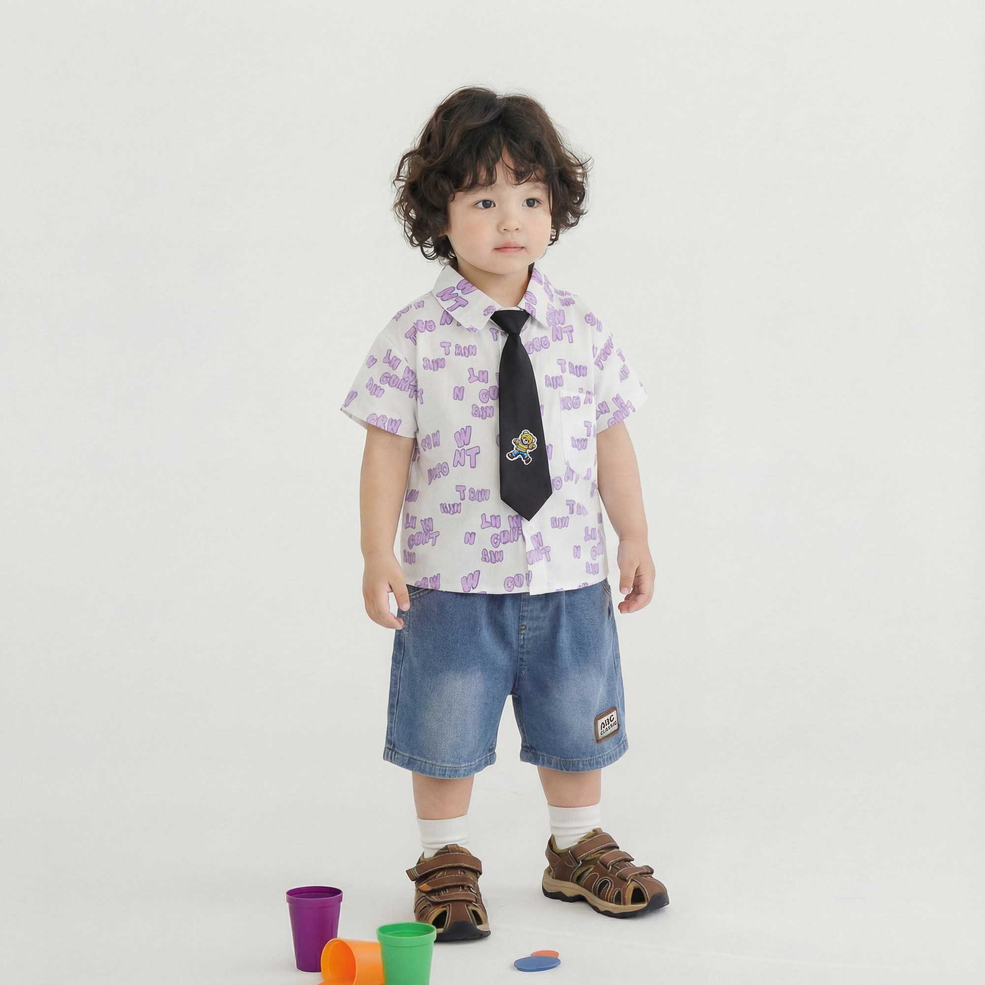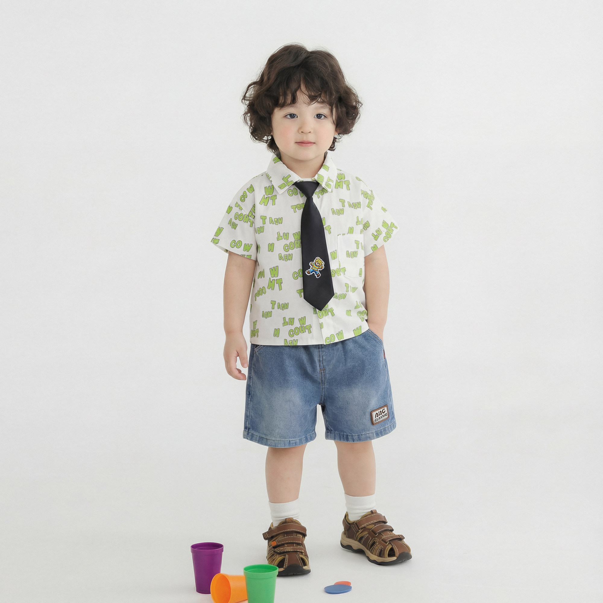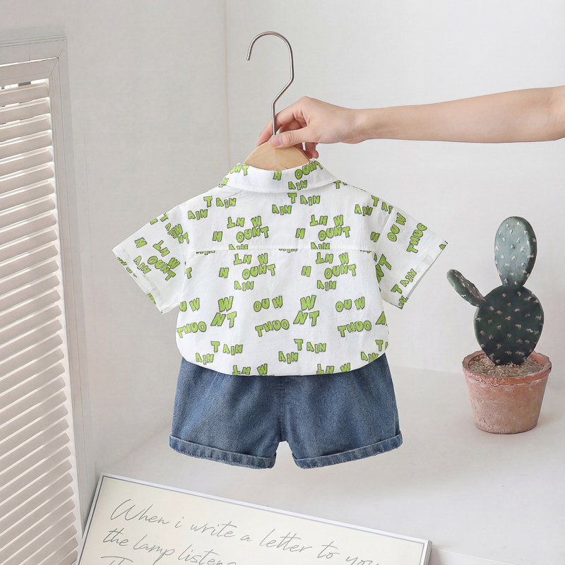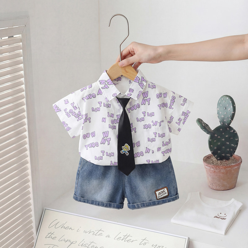 男童夏装短袖套装2026新款夏季儿童衬衫三件套婴儿宝宝小童衣服潮