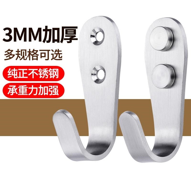 不锈钢挂钩单钩卫生间壁挂单个挂勾加厚衣帽钩挂衣钩承重衣柜墙面