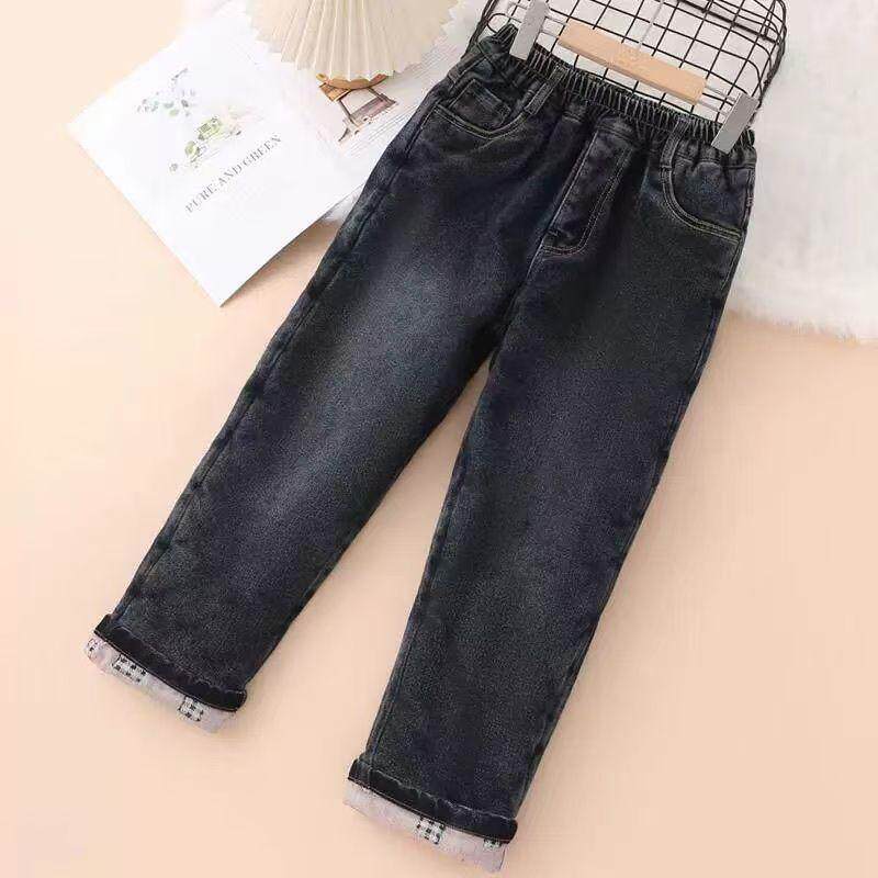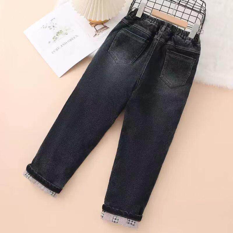 2024新款女童加厚棉裤外穿冬季北方三层加棉裤子中大童宽松牛仔裤