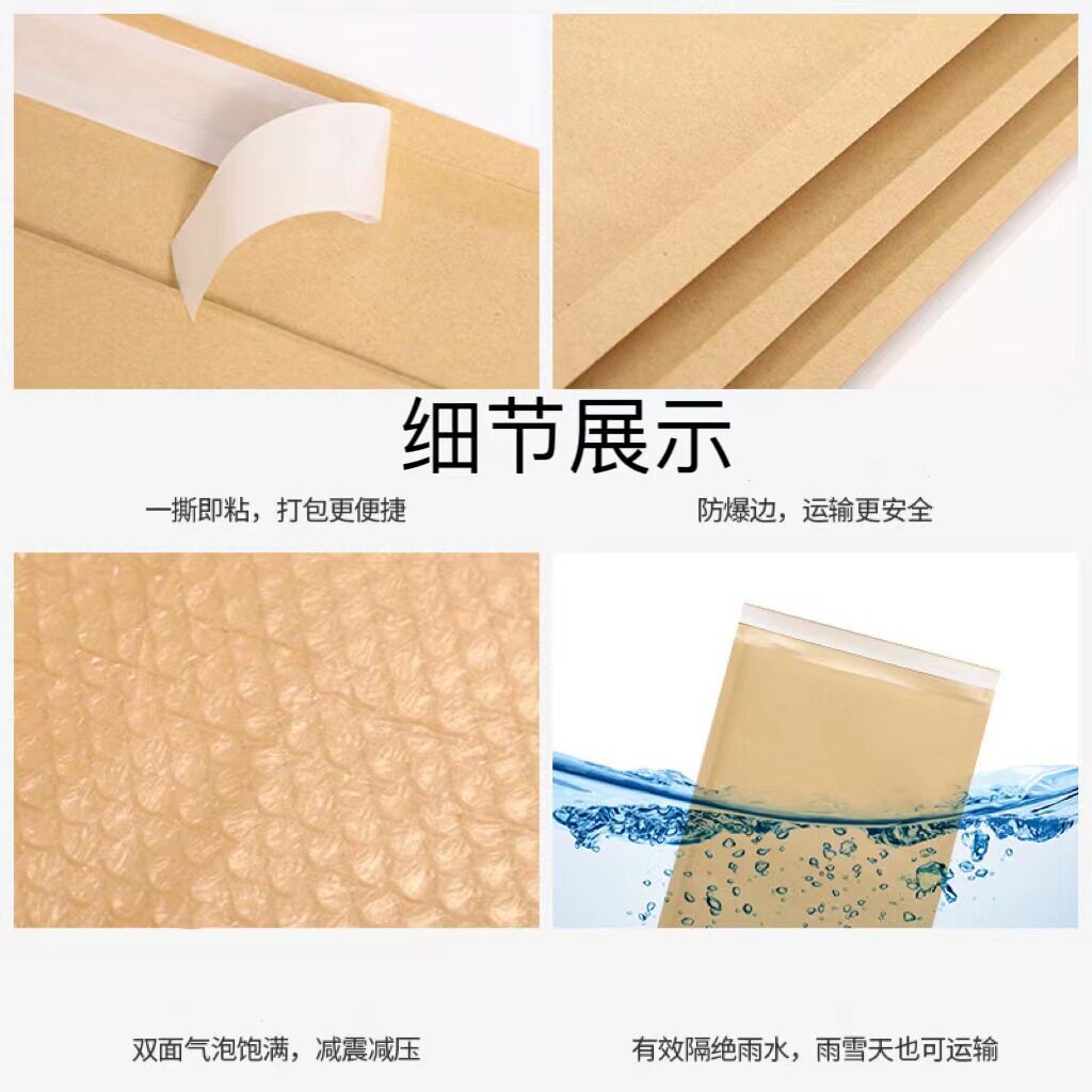 本色牛皮纸气泡信封袋泡泡打包袋物流快递自粘袋加厚防水包装袋子