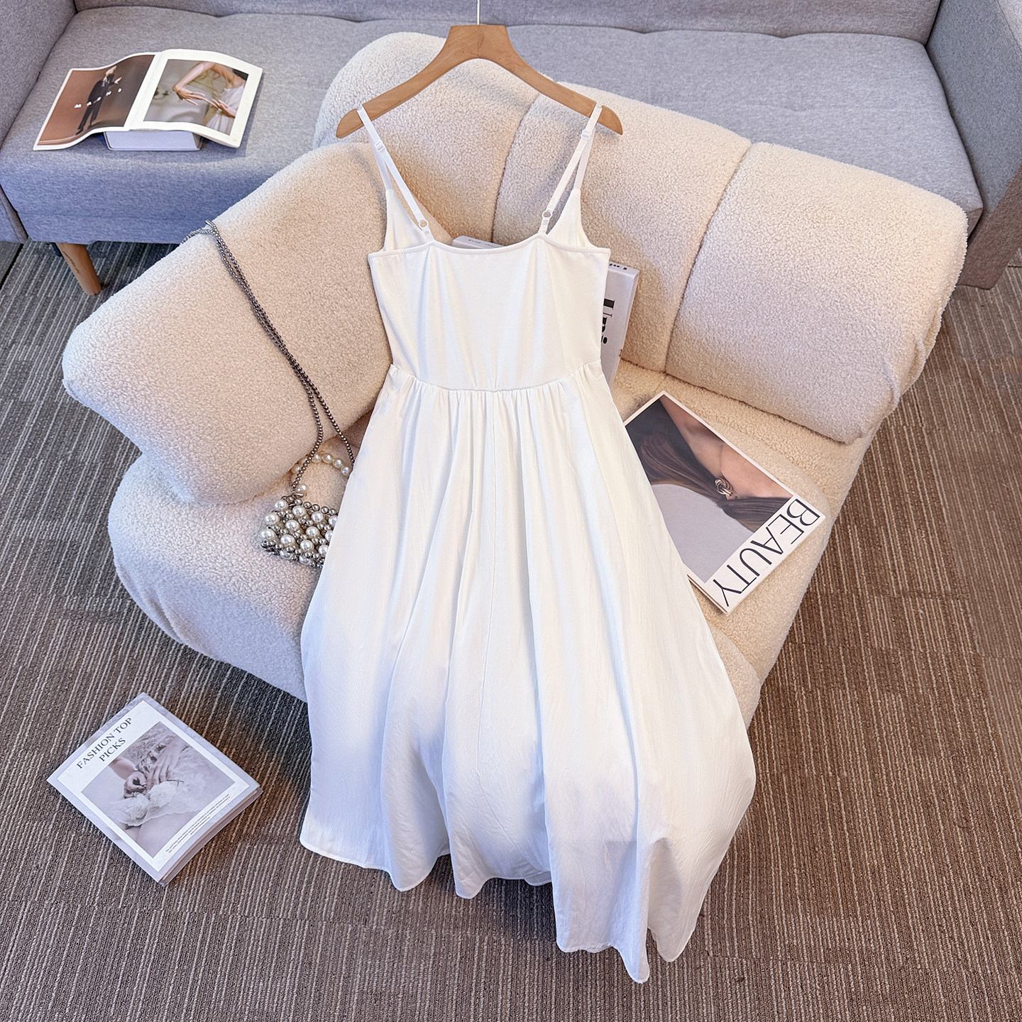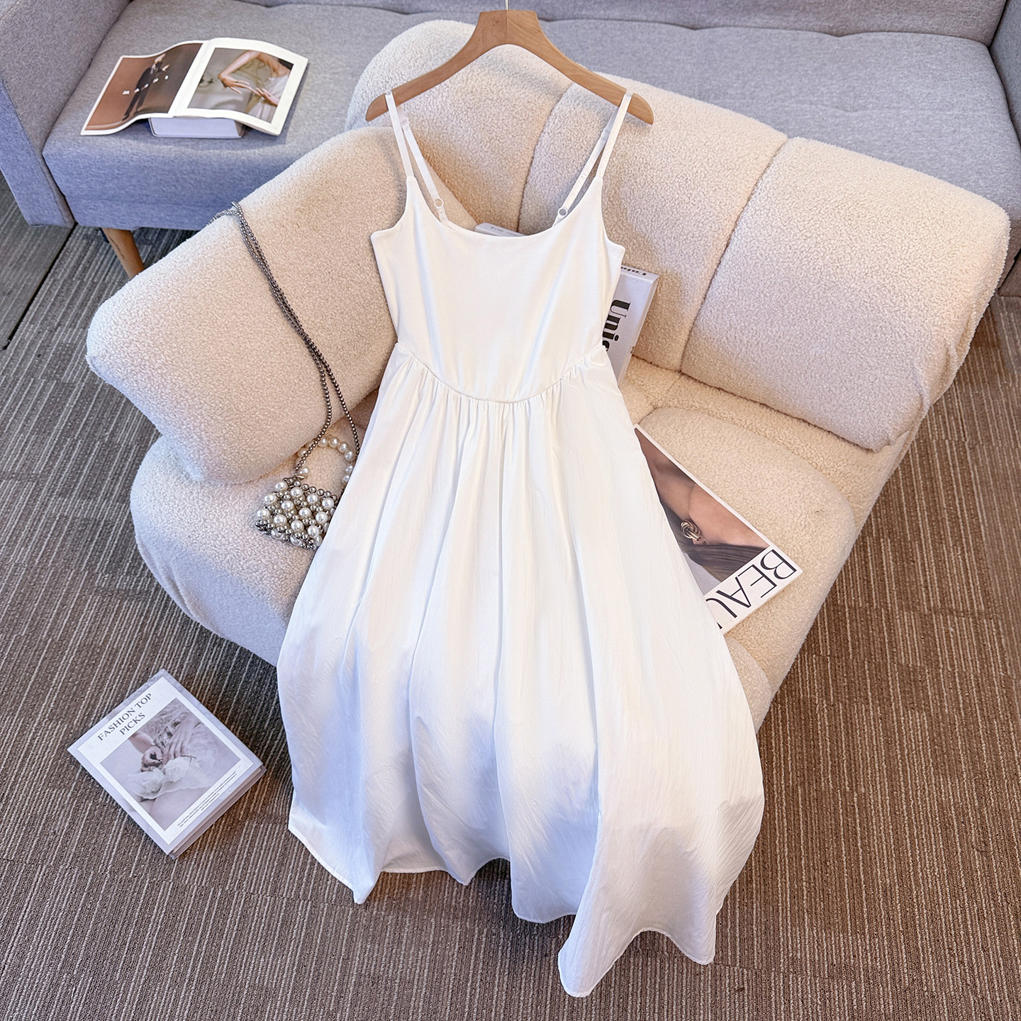 拉夏贝尔U领吊带连衣裙女2026春季新款收腰A字裙法式休闲甜美长裙