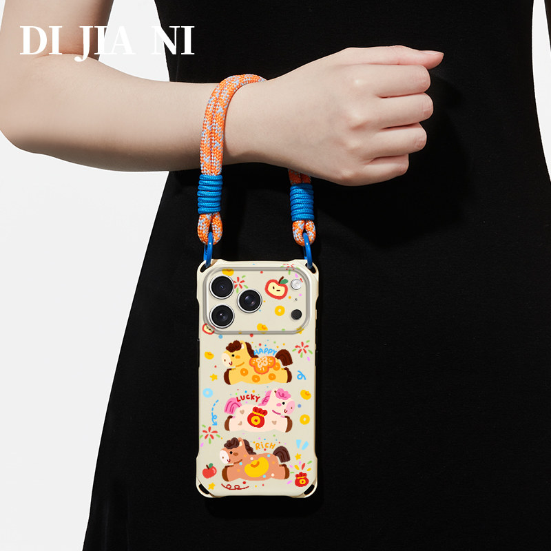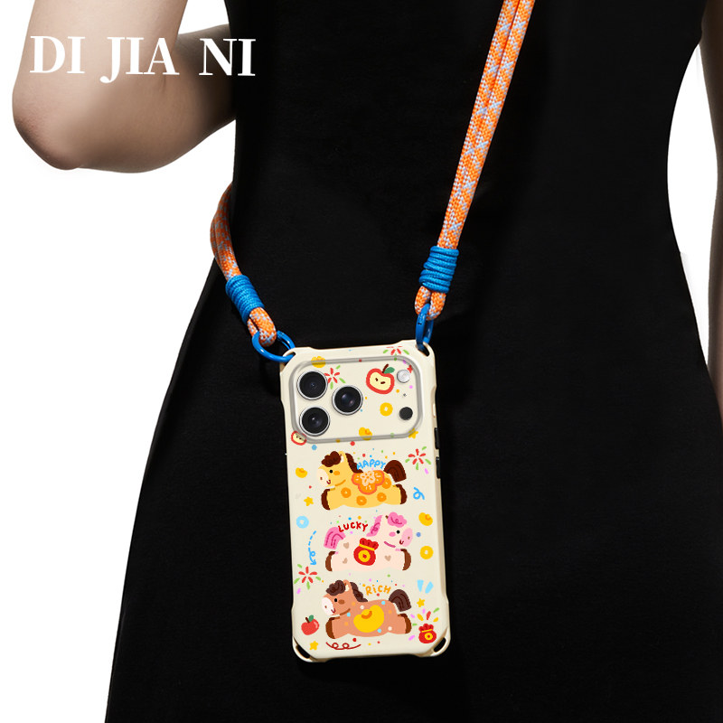 三匹小马适用苹果17promax手机壳原创马年16pro本命年iPhone15斜挎可背防摔14pm可爱卡通女款13手腕带挂绳12