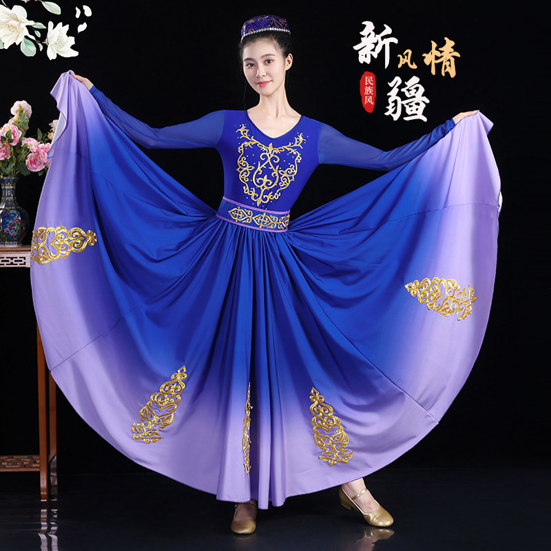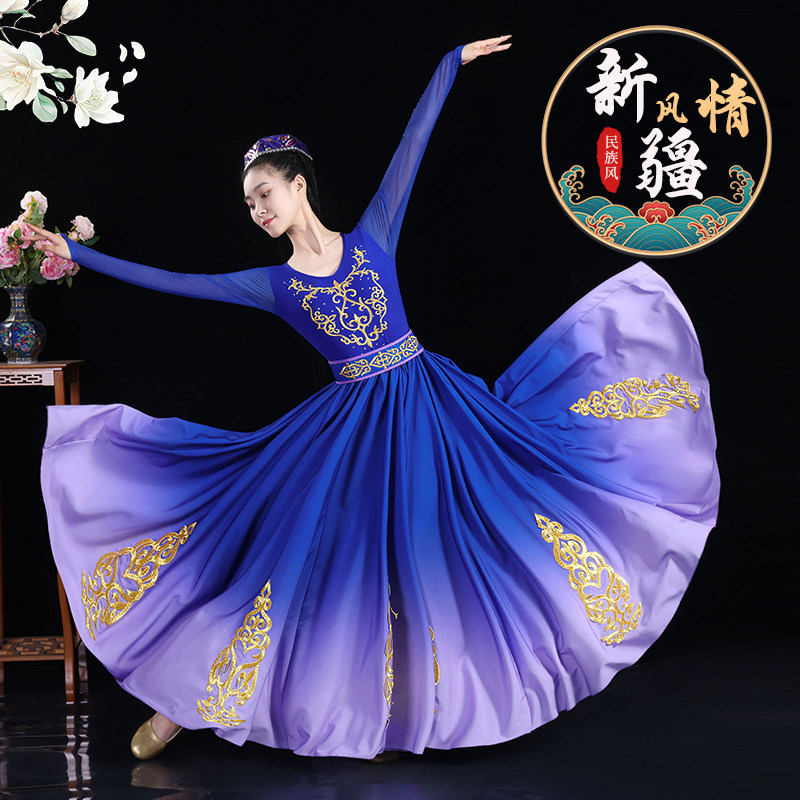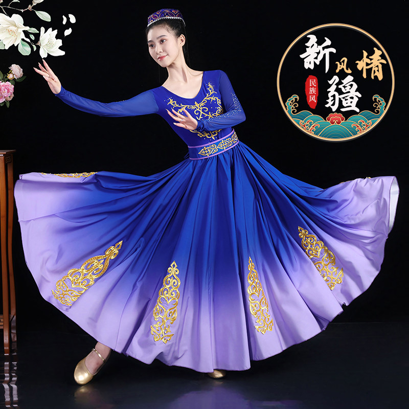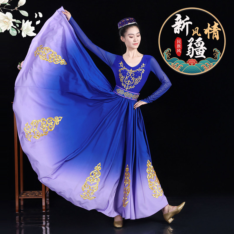 新疆舞蹈演出服新款成人女高档艺考大摆裙少数民族维吾族维族服装