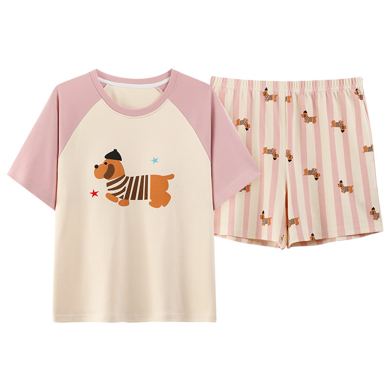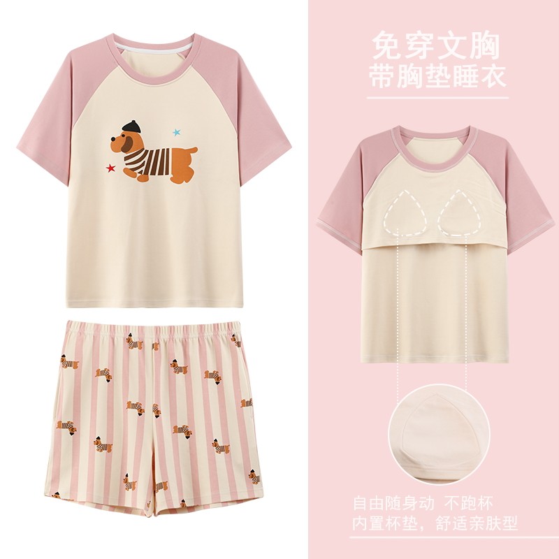 带胸垫睡衣女款夏季2026新款纯棉短袖短裤可爱卡通学生宿舍家居服