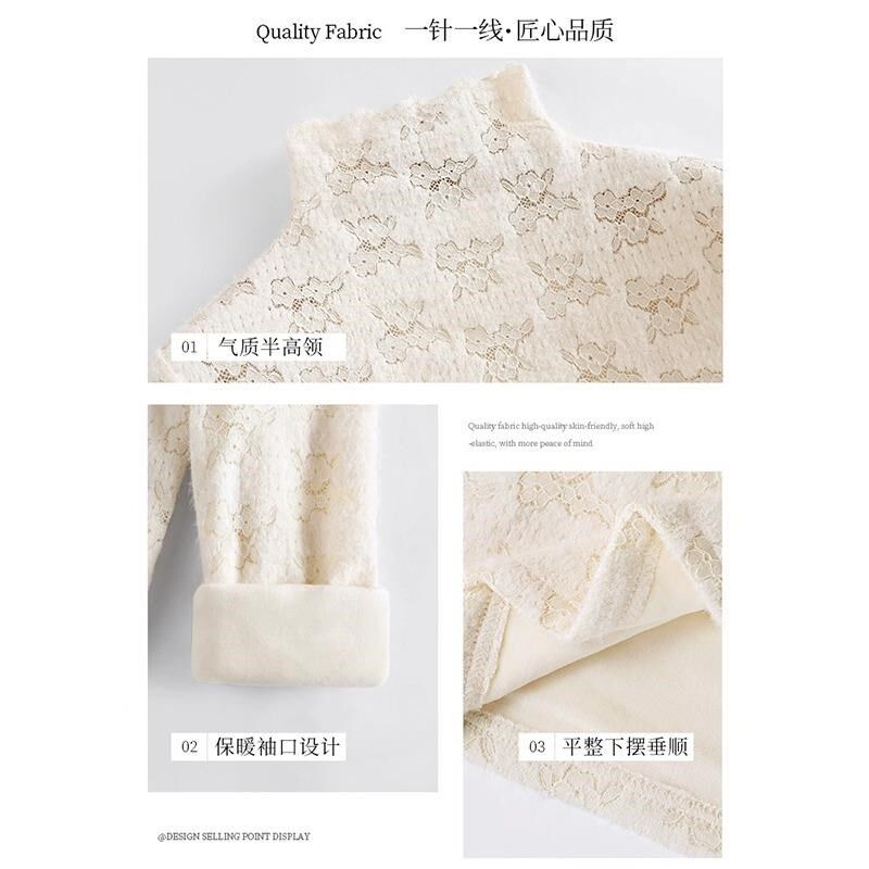 半高领蕾丝打底衫女秋冬高级感内搭可外穿加绒加厚一体绒保暖上衣