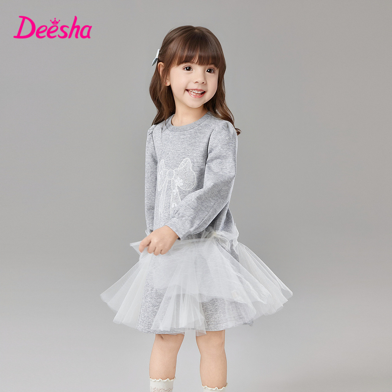 笛莎童装女童连衣裙春季新款小童女孩宝宝儿童卫衣裙子甜美公主裙