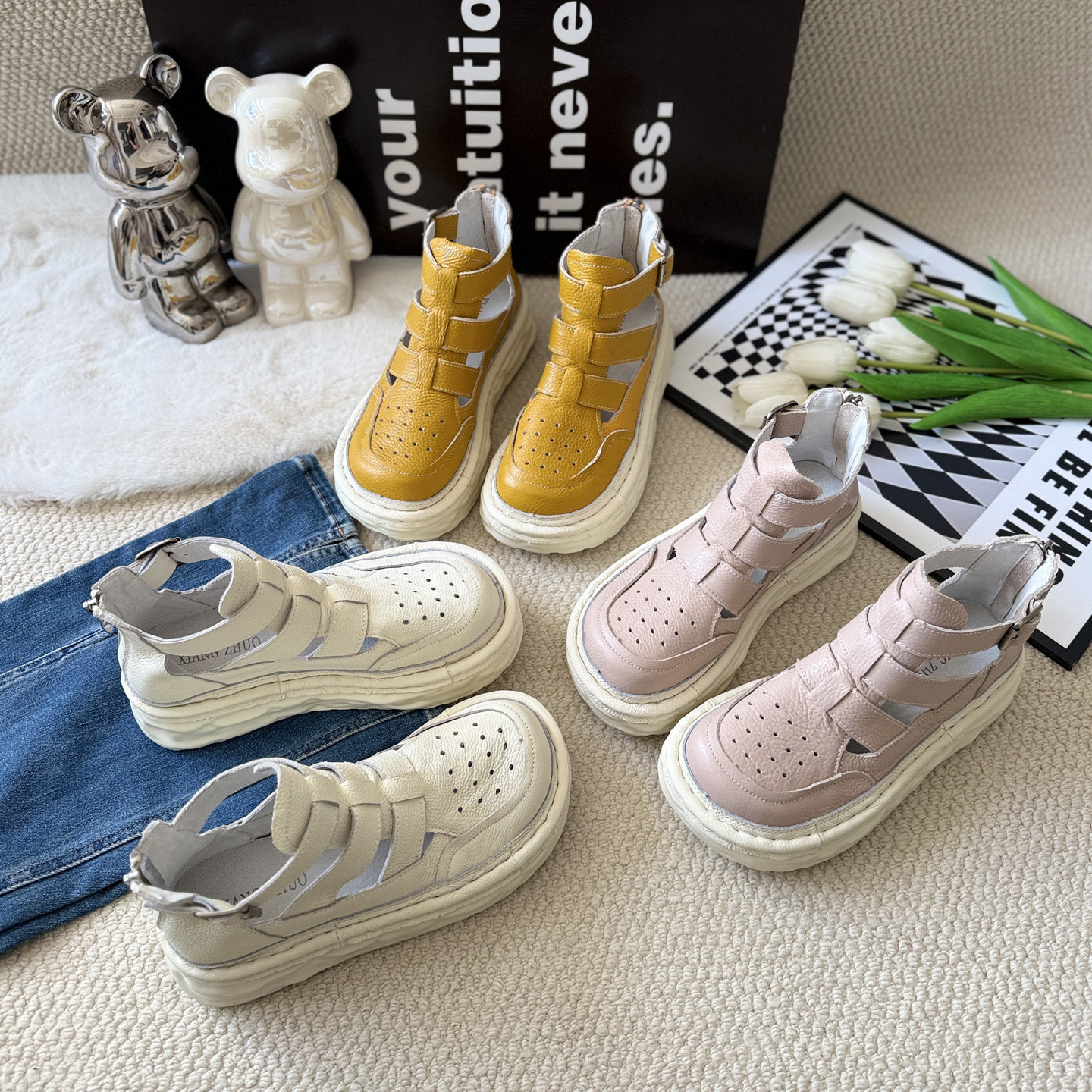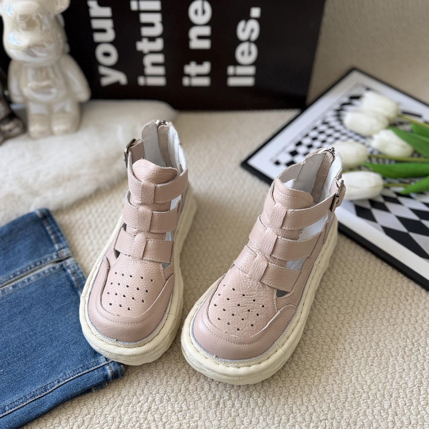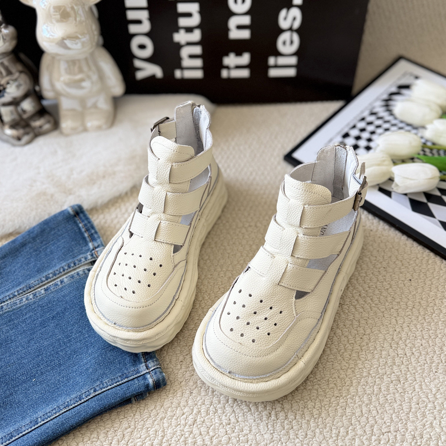 短靴夏季外穿真皮厚底罗马凉鞋女牛皮时尚高级感丑萌大头丑萌凉靴