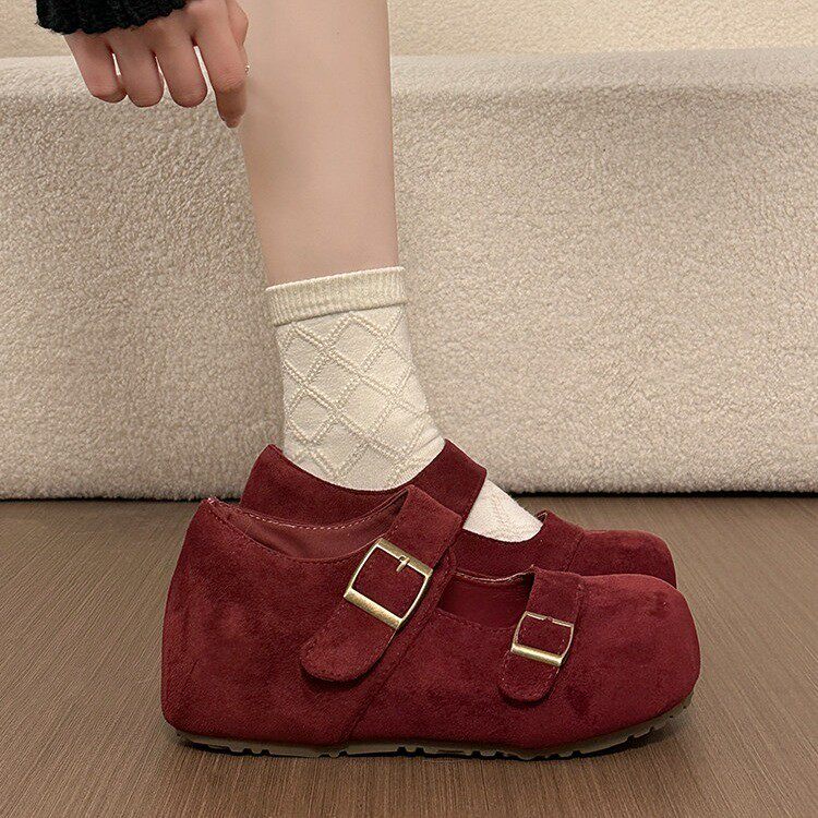 红色复古绒面百搭内增高玛丽珍鞋女2026春季新款可爱圆头浅口单鞋