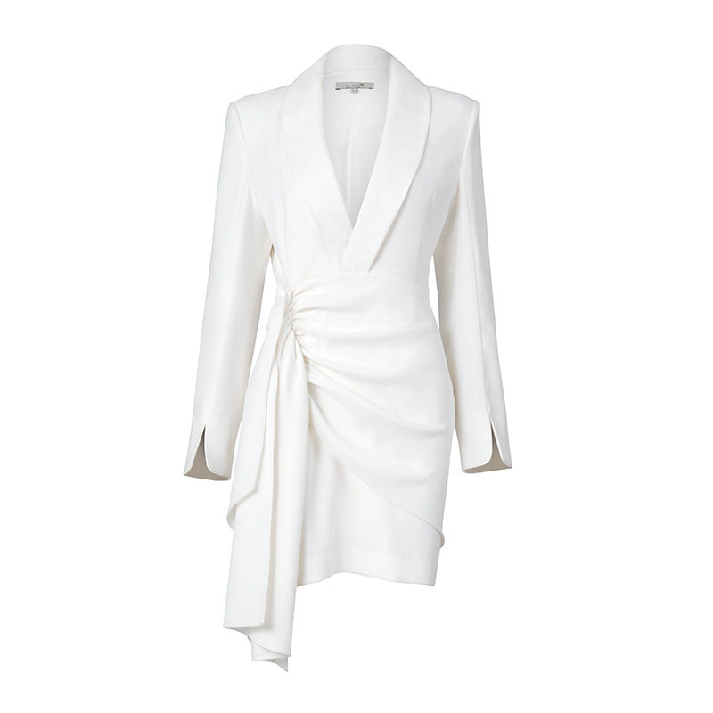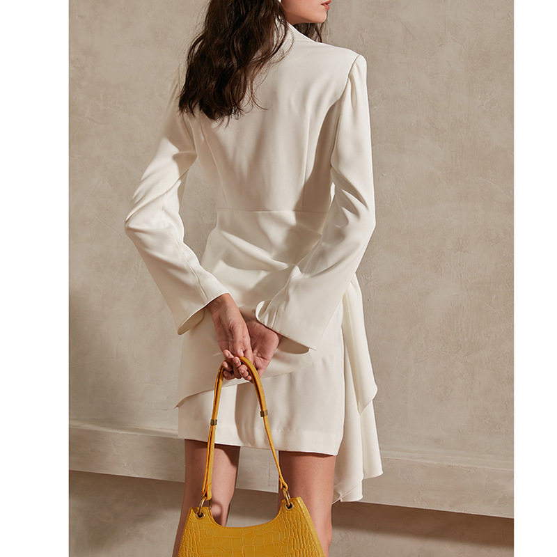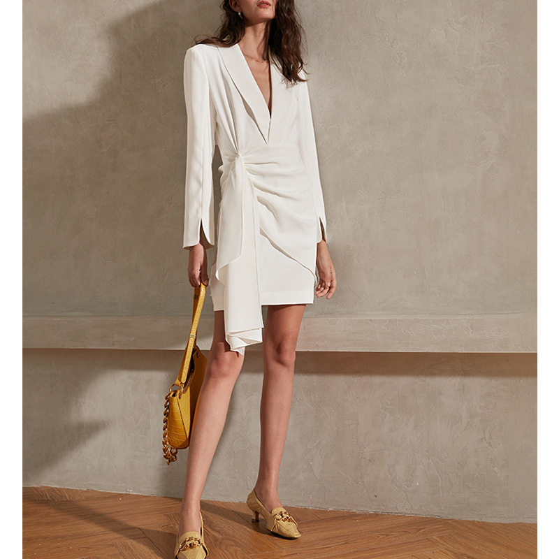 高端设计感白色V领长袖连衣裙法式优雅大牌气质礼服裙晚宴会年会