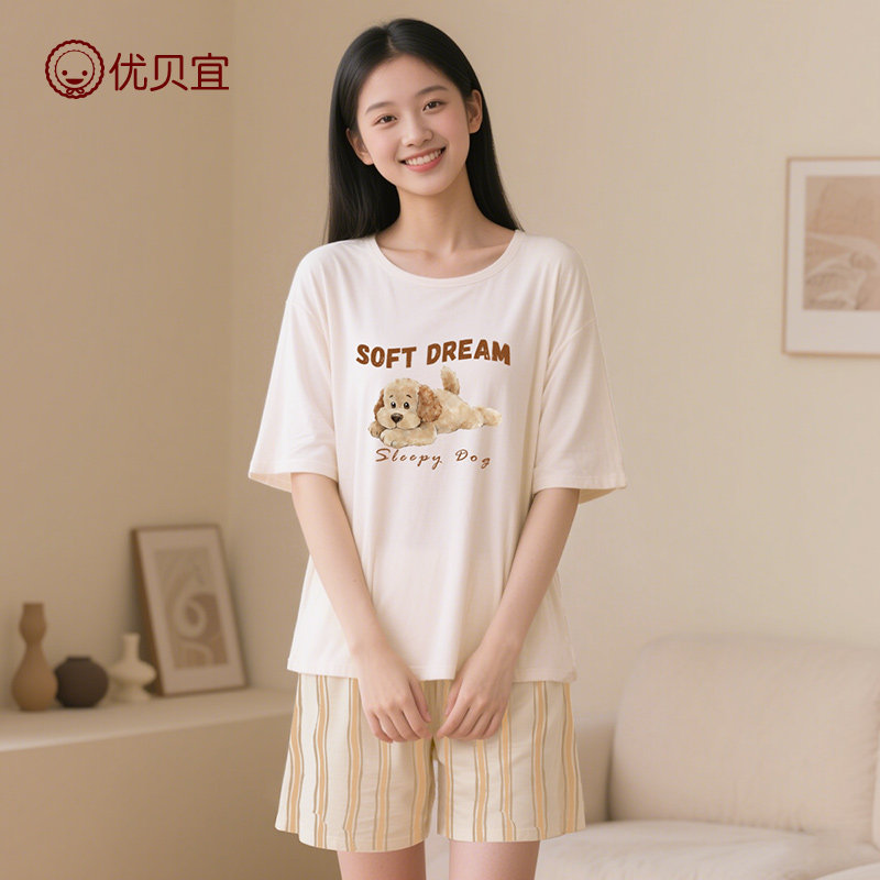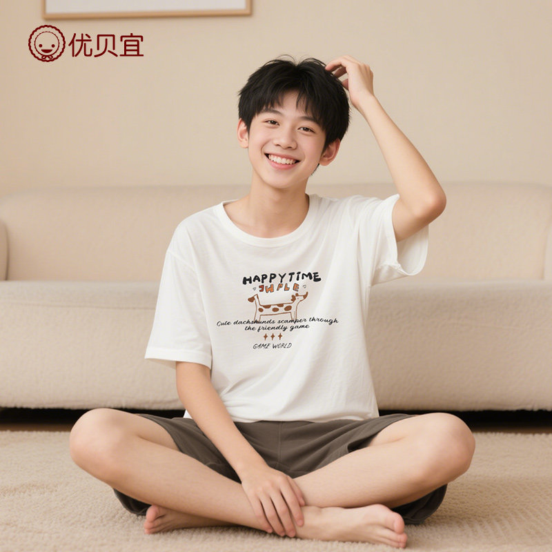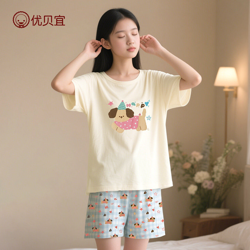 莫代尔青少年短袖套装男女童2026新品童装家居服初高中学生睡衣