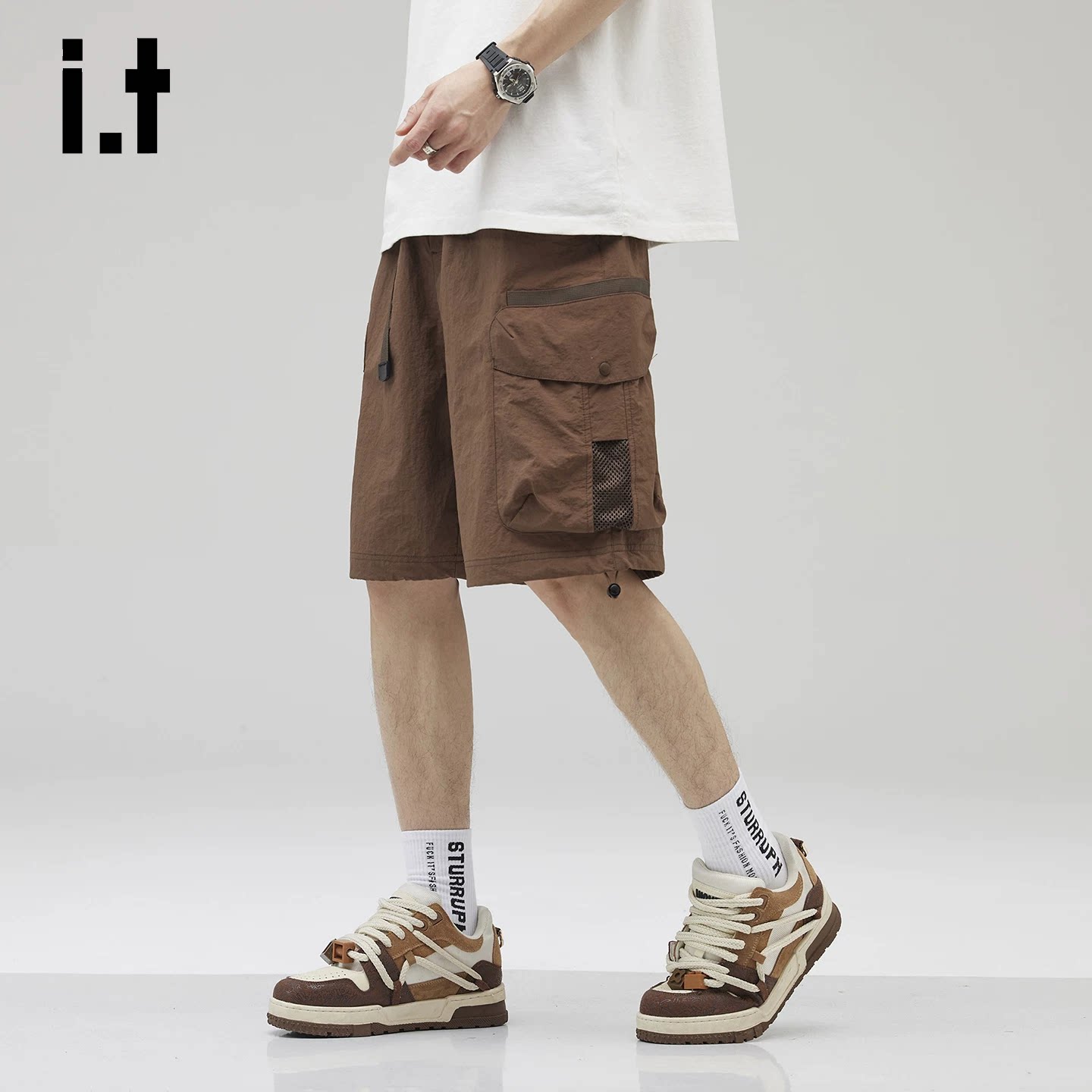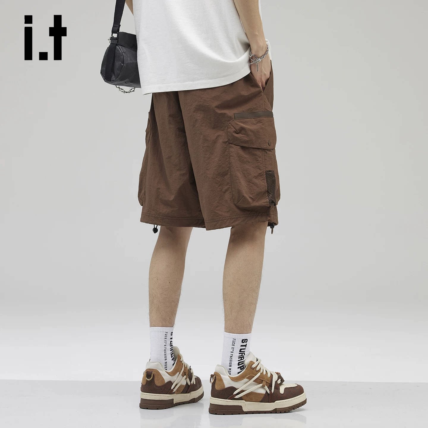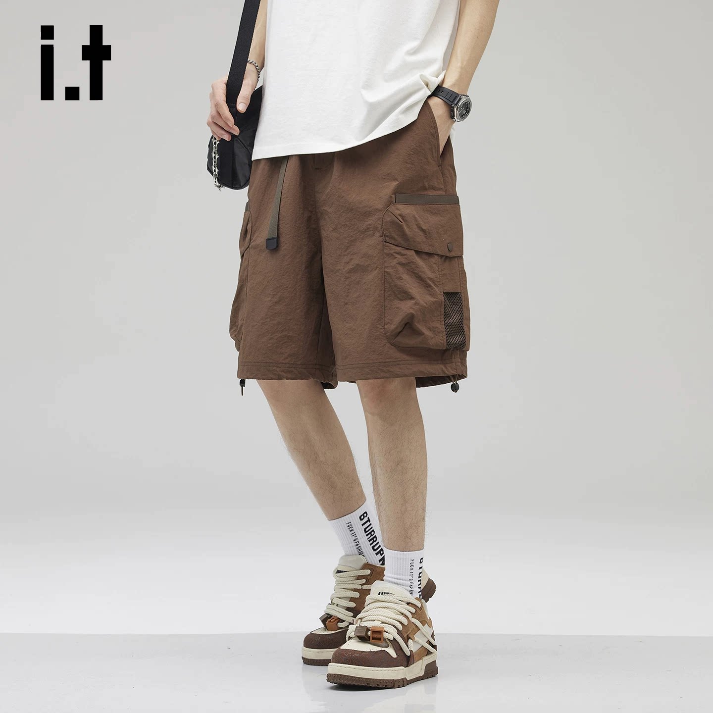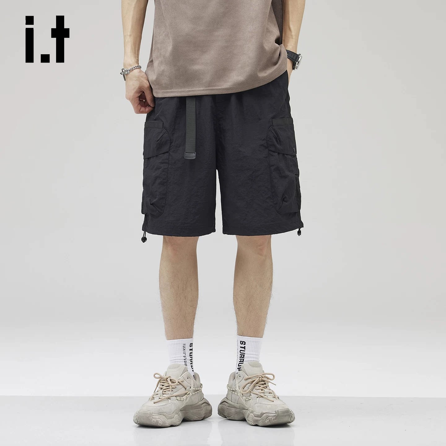 it:izzue高端抽绳冰丝休闲短裤男款夏2026新款能风工装五分裤子