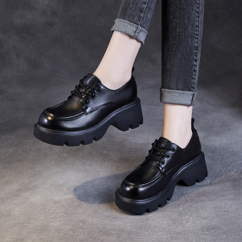 头层牛皮粗跟小皮鞋女2026新爆款秋冬加绒厚底乐福鞋真皮系带单鞋