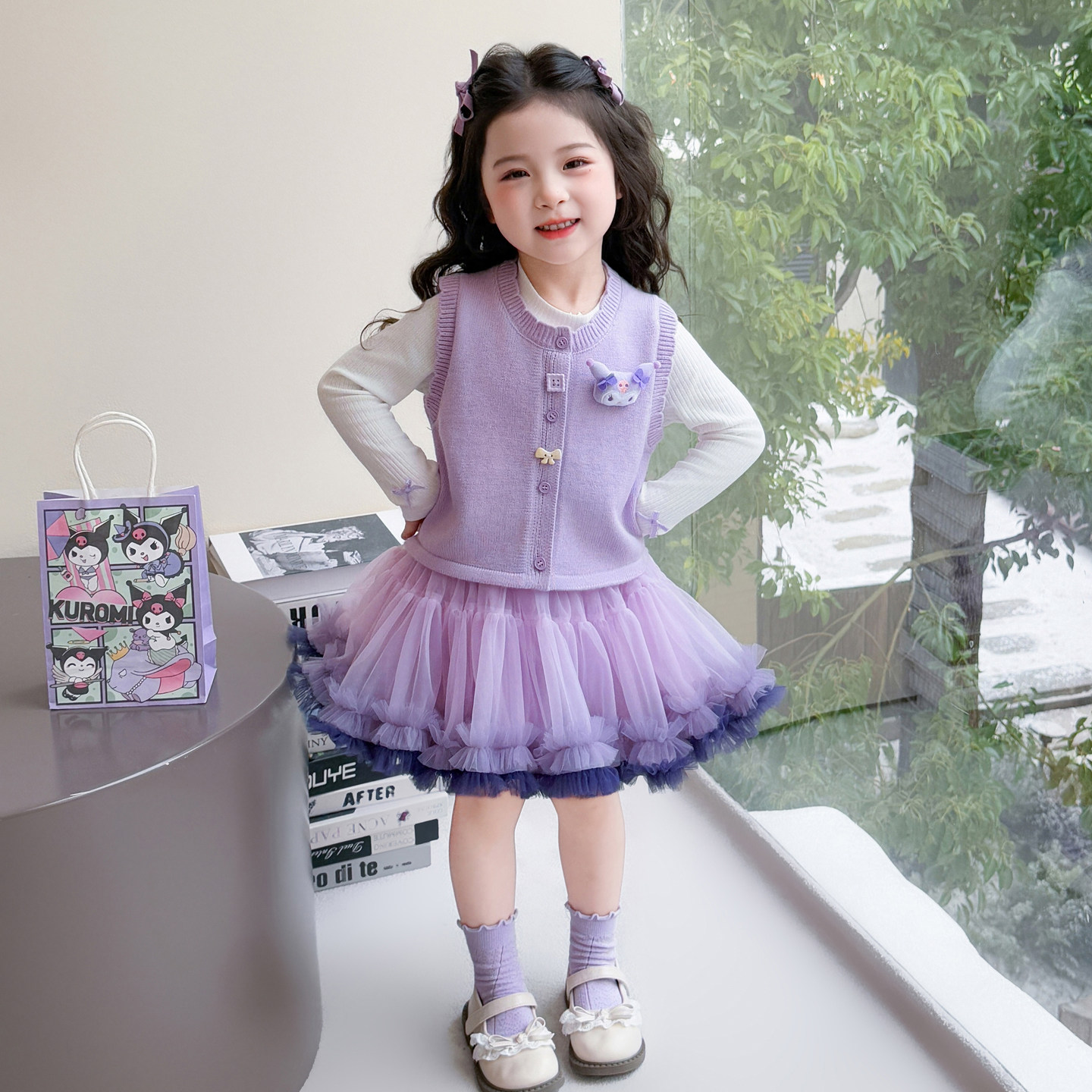 女童春秋款精灵裙套装2026新款洋气时髦儿童女宝宝春季春装凸凸裙