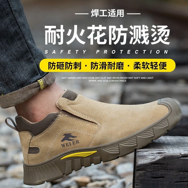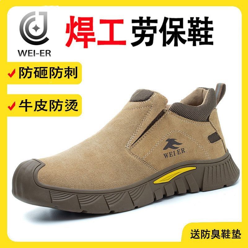 无钢头劳保鞋男不带钢板电焊专用真皮透气无铁底超轻便一脚蹬男鞋