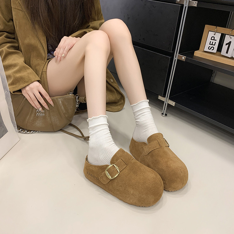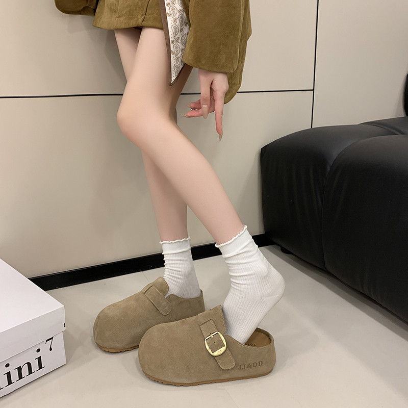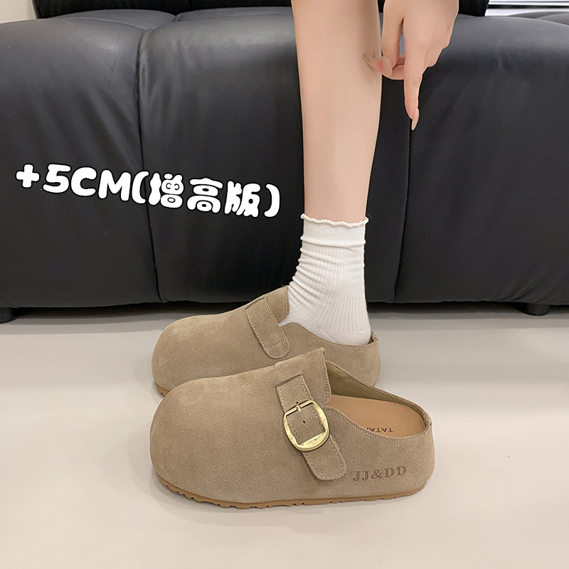 内增高勃肯鞋半拖女外穿2026新款春季真皮厚底一脚蹬包头拖鞋41码