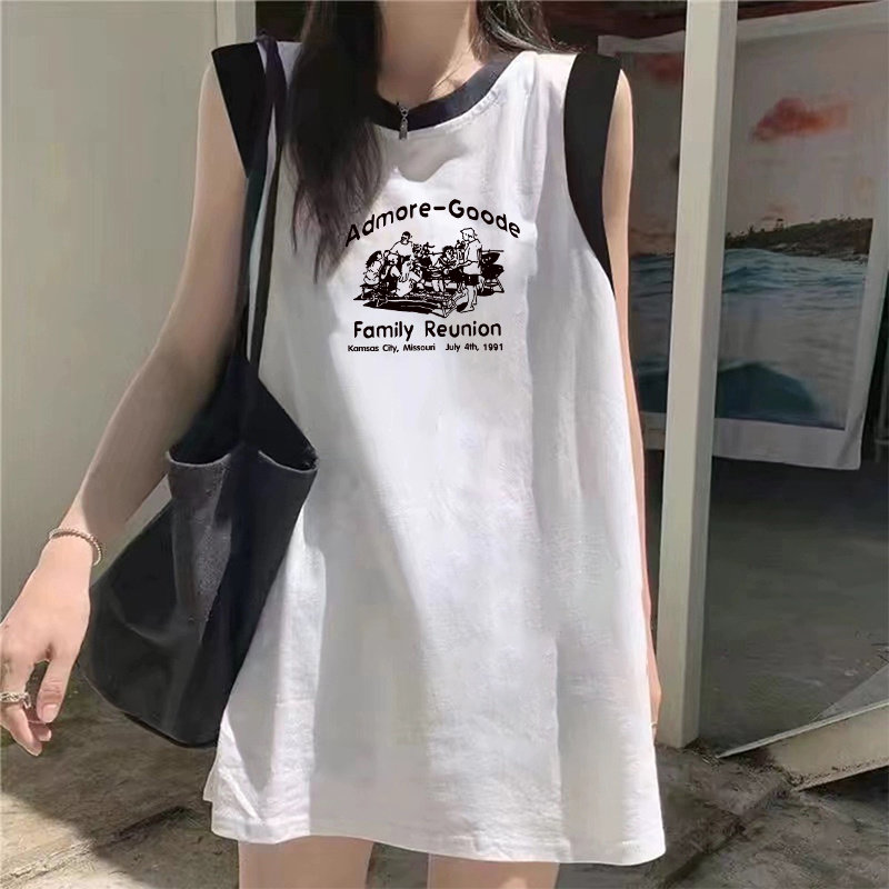 篮球服背心女夏外穿白色宽松运动下衣失踪纯棉内搭无袖t恤上衣ins