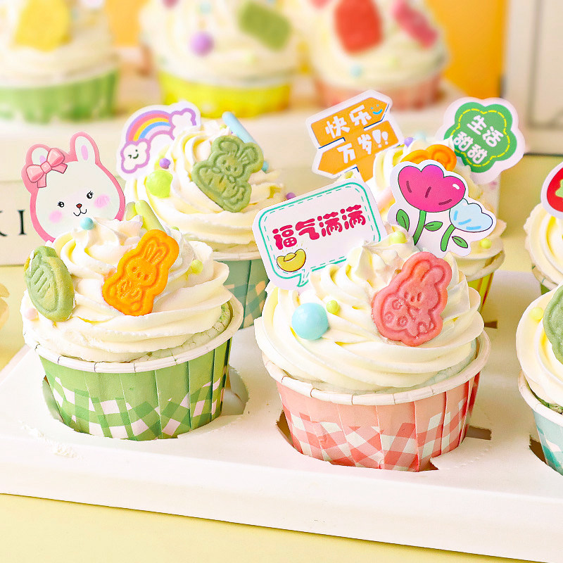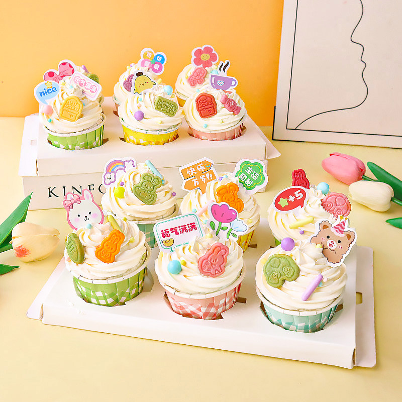 可爱插卡儿童节蛋糕装饰插件舒芙蕾热奶宝摆件网红纸杯甜品装扮