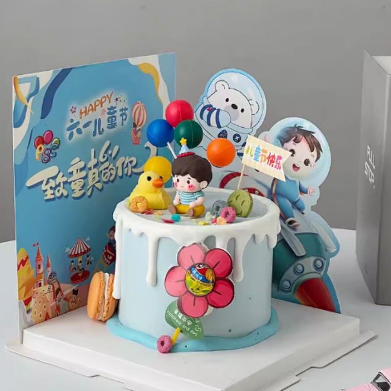 儿童节蛋糕装饰可爱男孩女孩小朋友人偶插件生日快乐烘焙软胶摆件