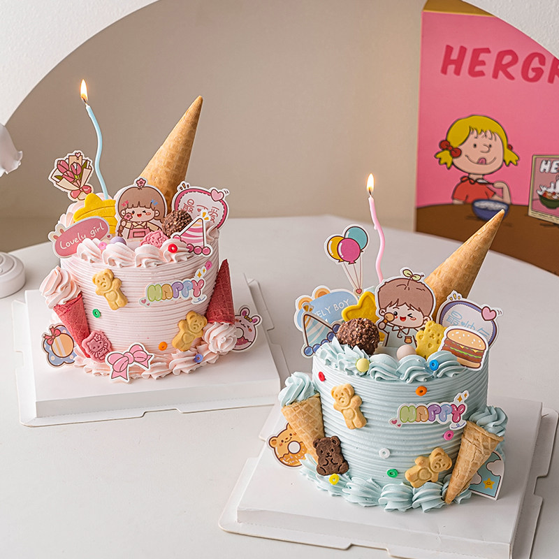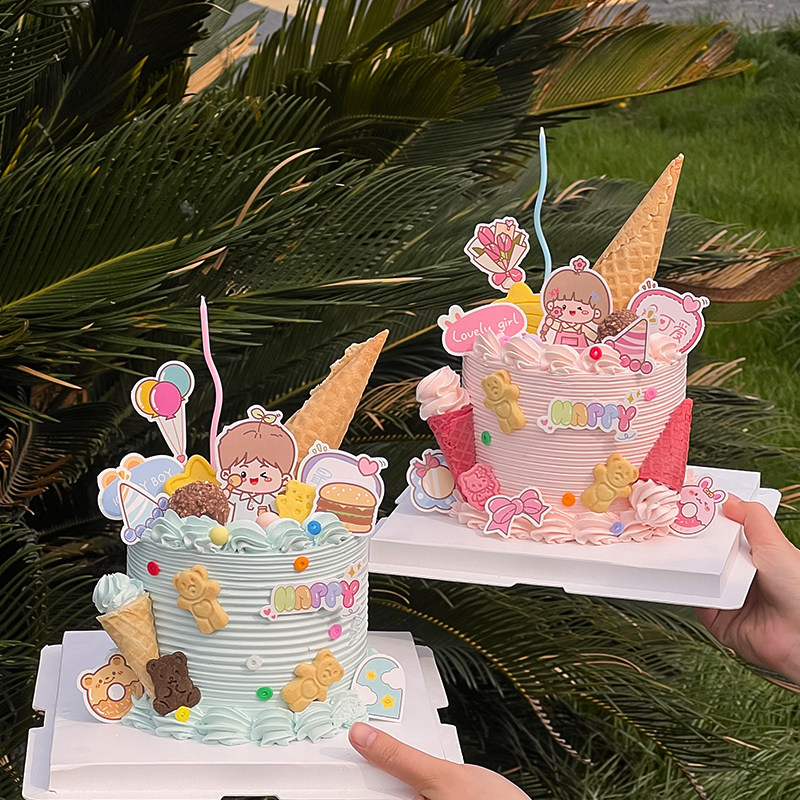 六一儿童节蛋糕装饰帅气男孩女孩插牌欢乐61幼儿园小朋友卡通装扮