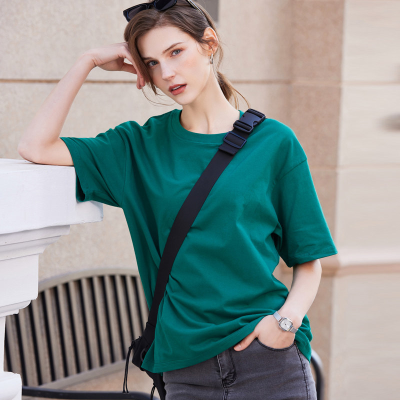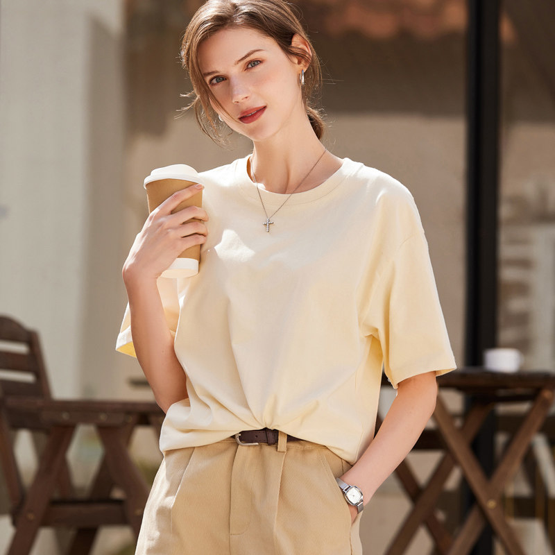 重磅纯棉短袖t恤女夏季2026新款圆领宽松大版230g新疆棉纯色上衣