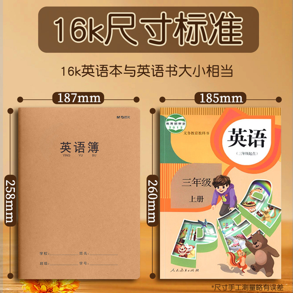 晨光英语本小学生专用作业本初中生英语牛皮纸本三到六年级四线三格英文英语簿练习本A5加厚听写本大本子16k
