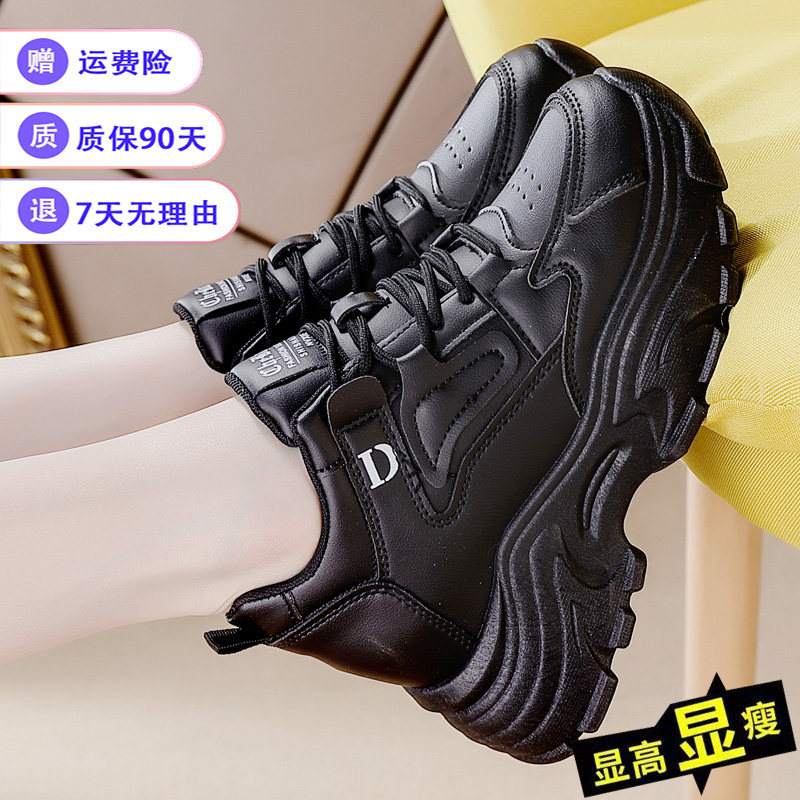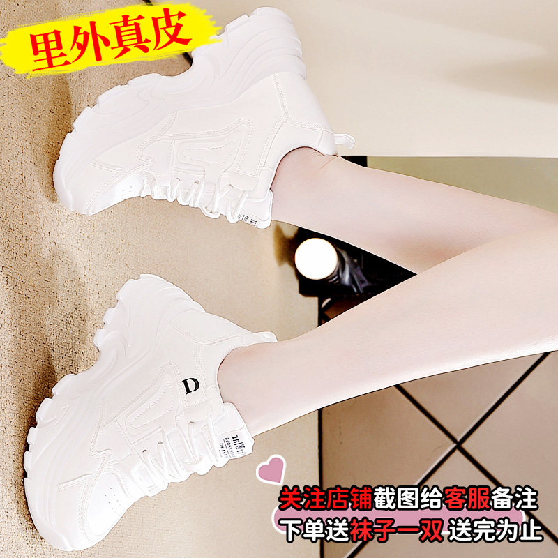 香港真皮内增高老爹鞋女2026春季百搭厚底休闲女鞋时尚运动小白鞋