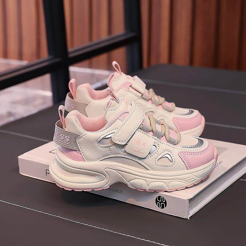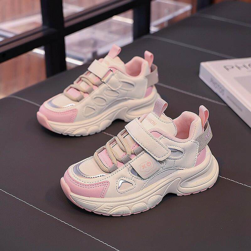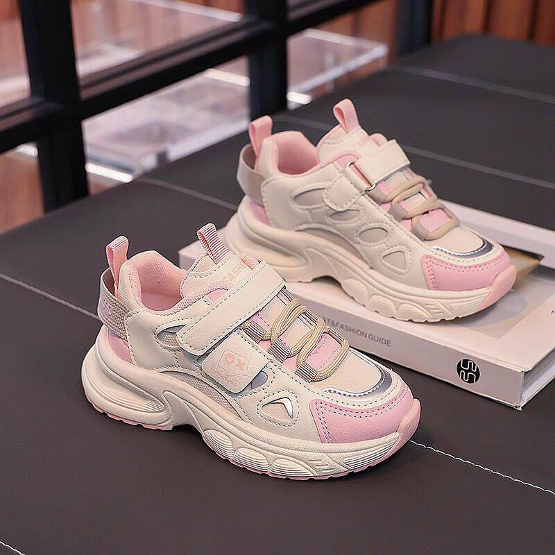 女童鞋春款2025新款儿童皮面防水运动鞋中大童软底女孩百搭老爹鞋