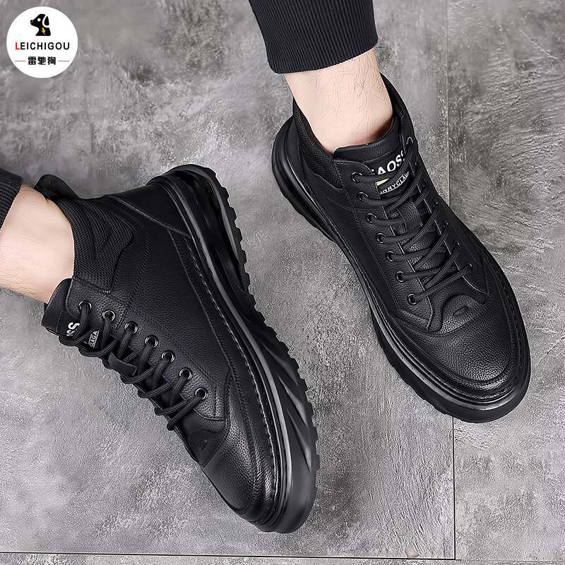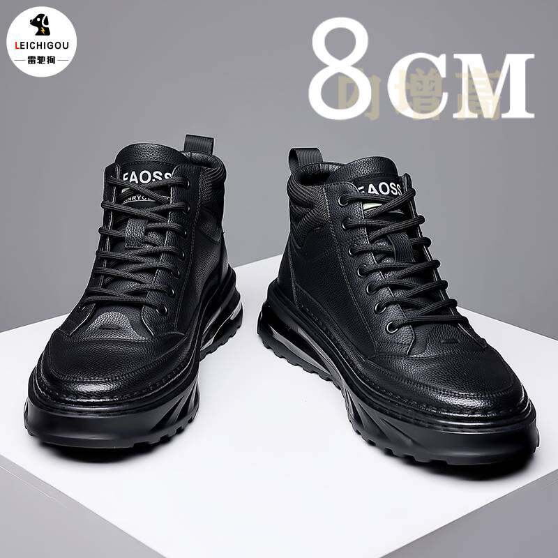 纯黑色厚底高帮休闲皮鞋男耐磨秋季真皮内增高男鞋10cm爆款马丁靴