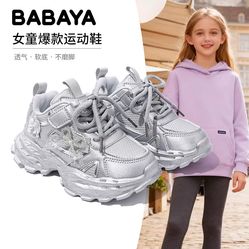芭芭鸭儿童运动鞋2026春季新款女童鞋子跑步鞋女孩休闲百搭老爹鞋