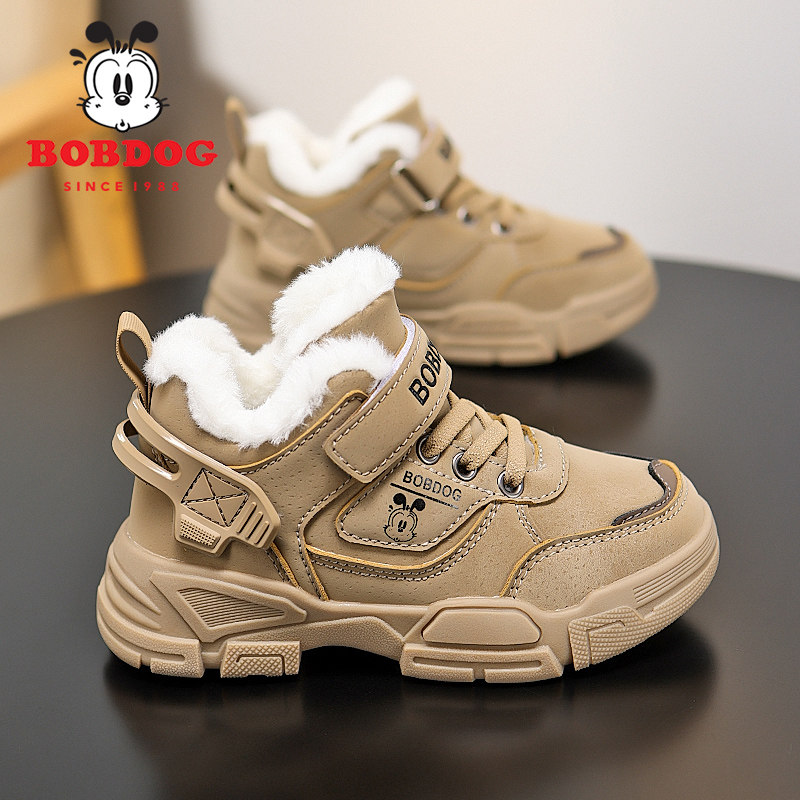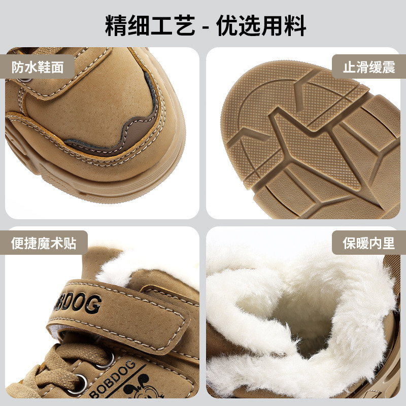 巴布豆童鞋男童棉鞋2026冬季新款大童加绒加厚大棉鞋子儿童雪地靴