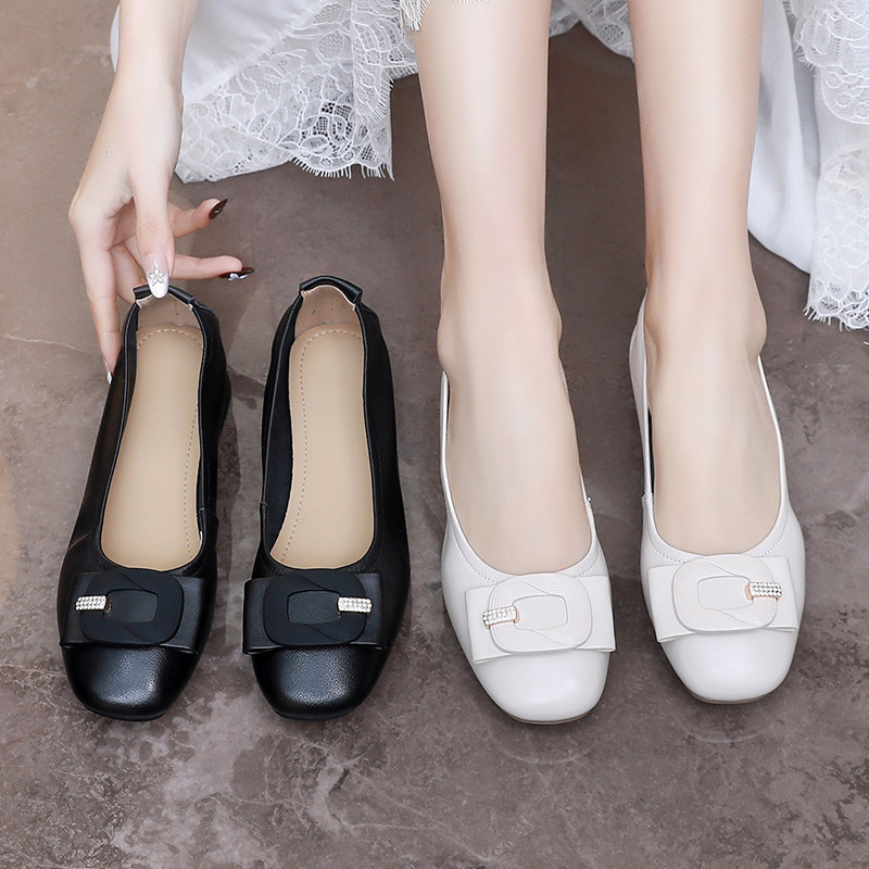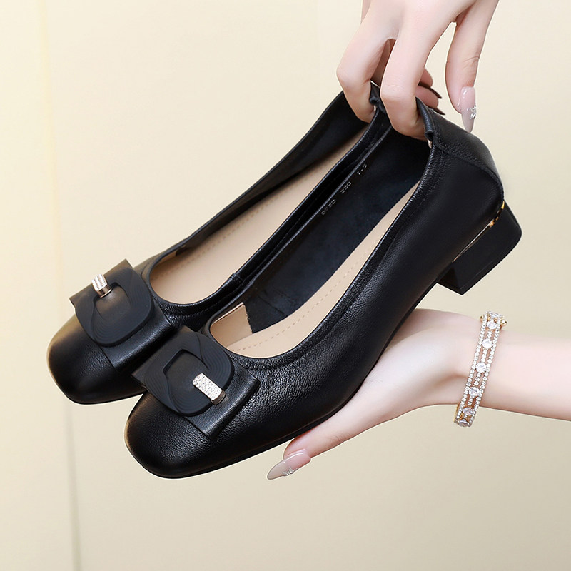 通勤风真皮方扣浅口单鞋女2026春夏新款低跟软底舒适百搭工作鞋