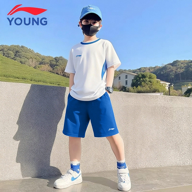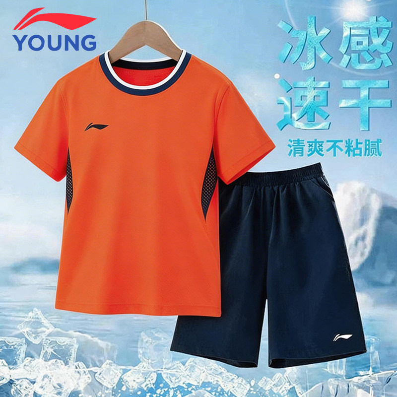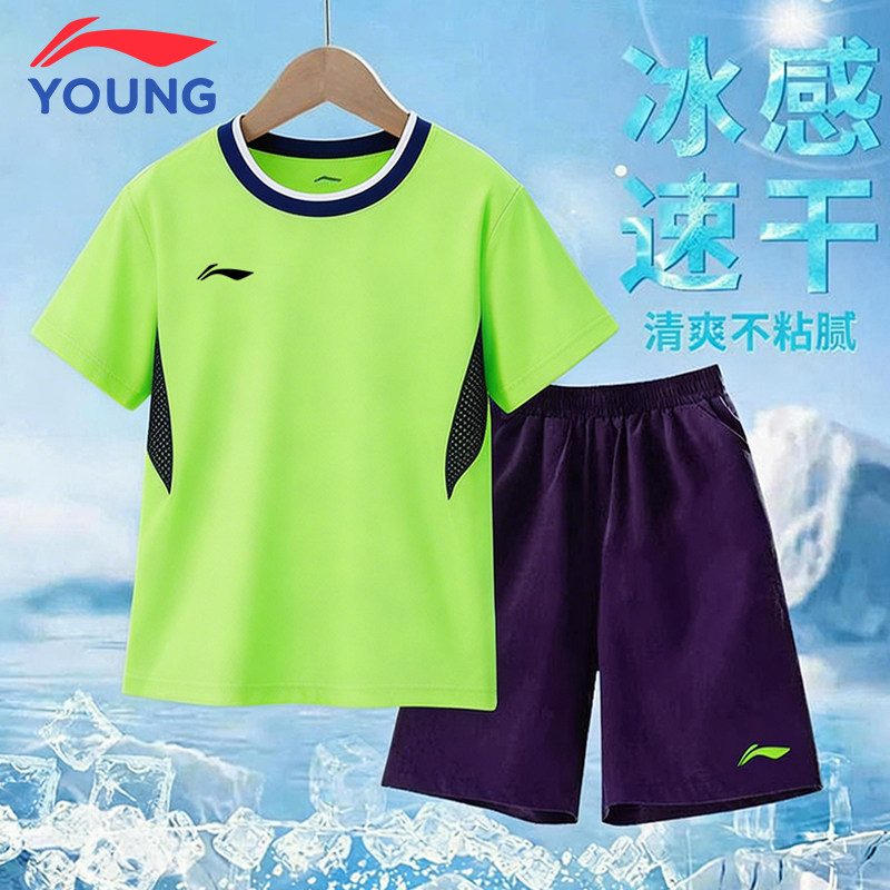 李宁儿童比赛服新款轻薄透气男童女童短裤短袖青少年速干球服套装