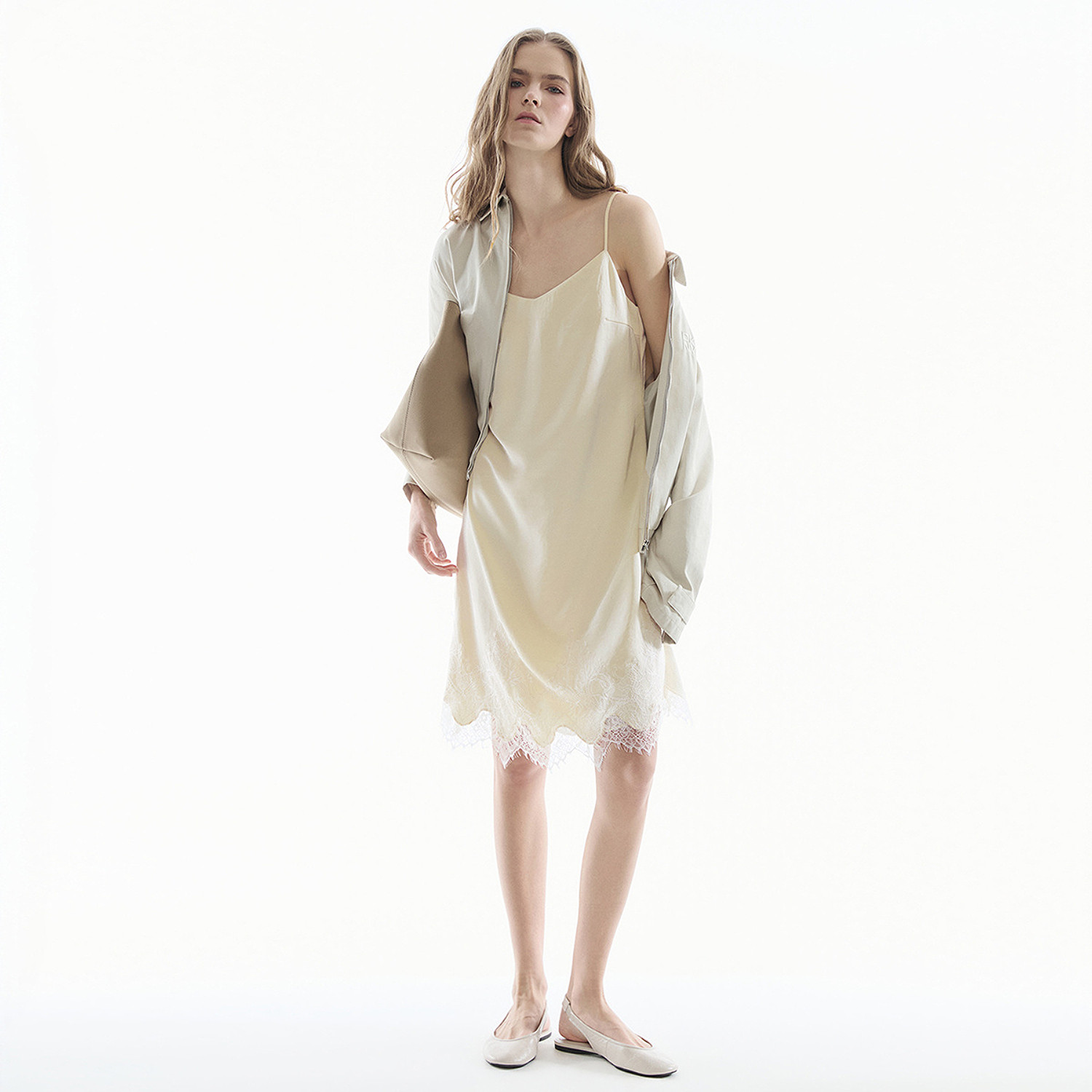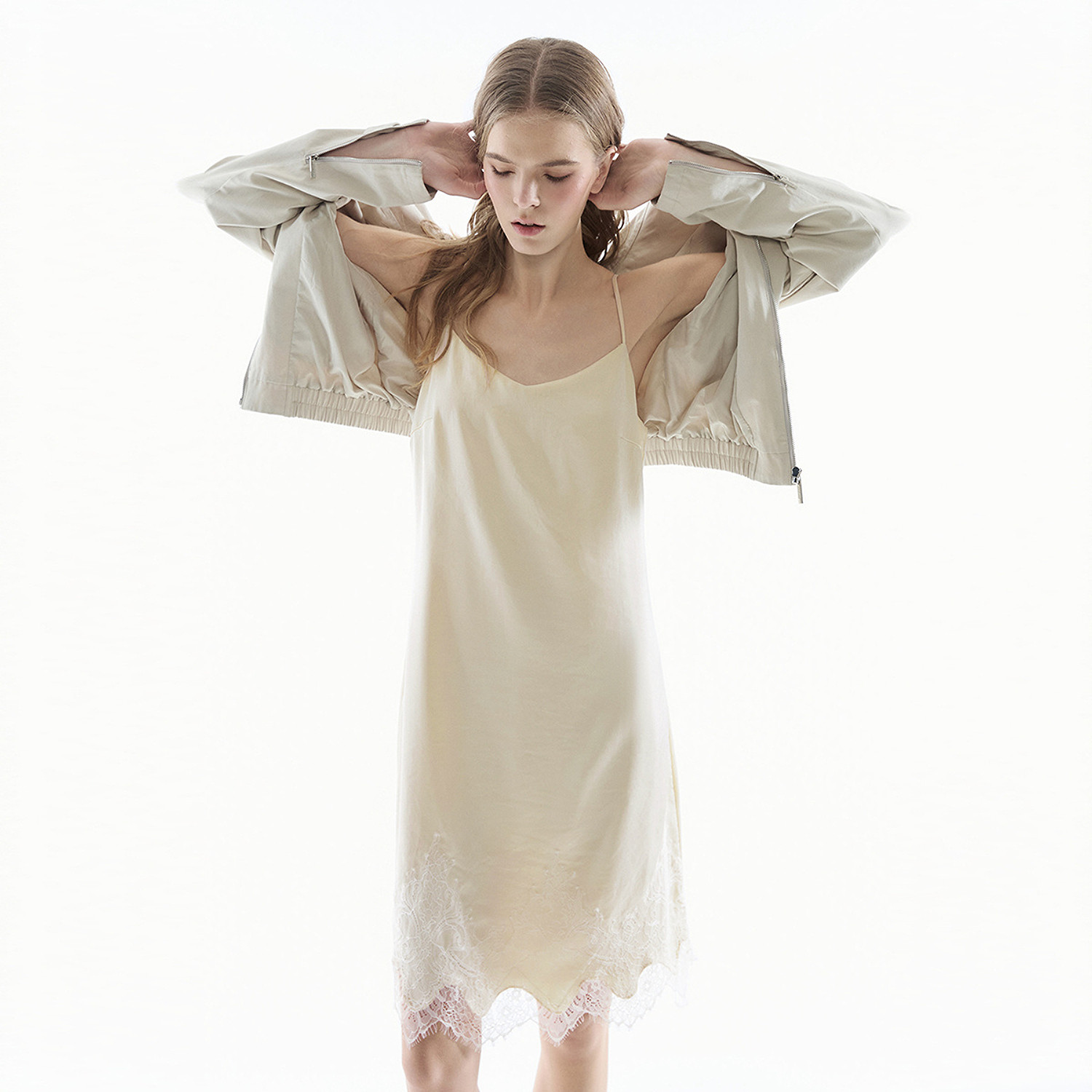 DKNY唐可娜儿26春夏新款吊带连衣裙女蕾丝时尚简约纯色内搭裙子潮