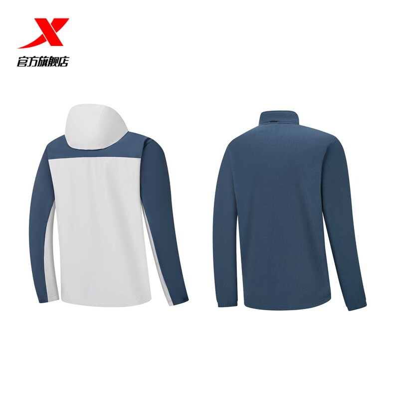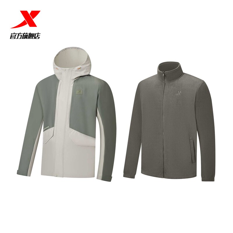 特步三合一风衣外套男装官方正品户外防风两件套冲锋加绒登山服男