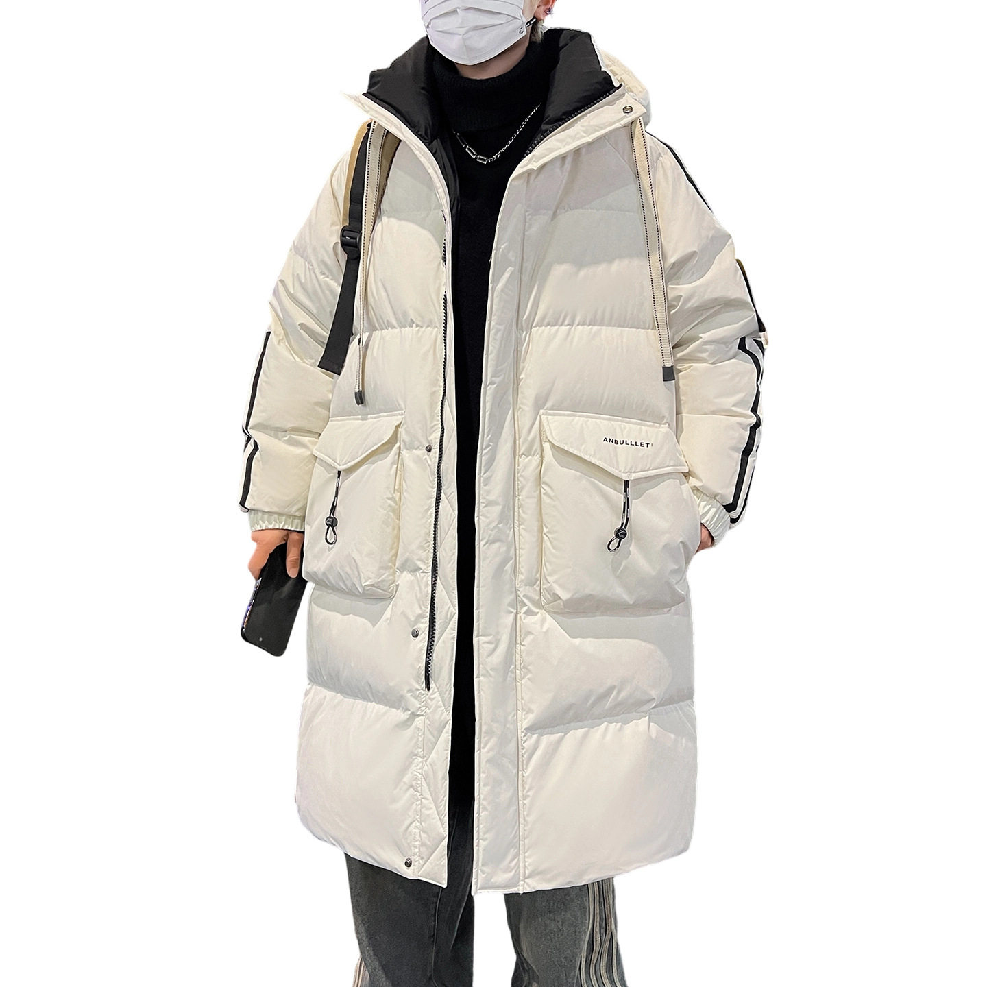 德国冬季青少年中长款羽绒服男孩初中高中学生加厚白鸭绒外套大童