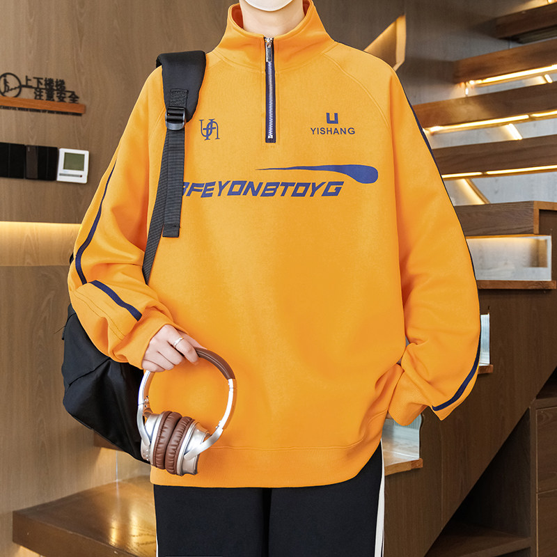 半拉链卫衣男生春秋季新款初中学生大童青少年立领长袖t恤男装士