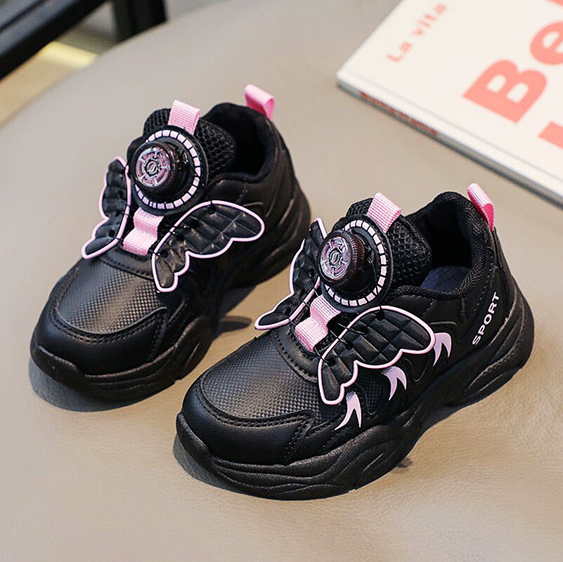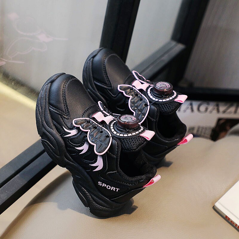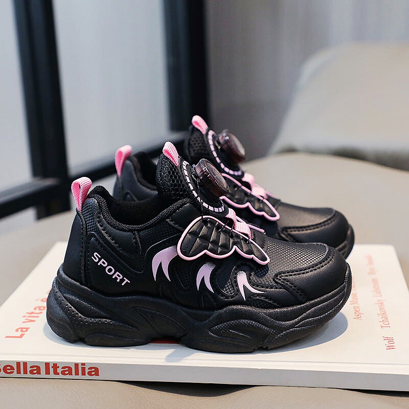 女童鞋子2026春季新款防滑女孩老爹鞋黑色耐脏学生儿童跑步运动鞋