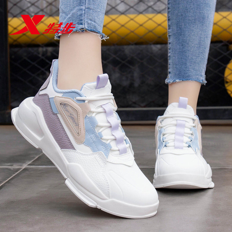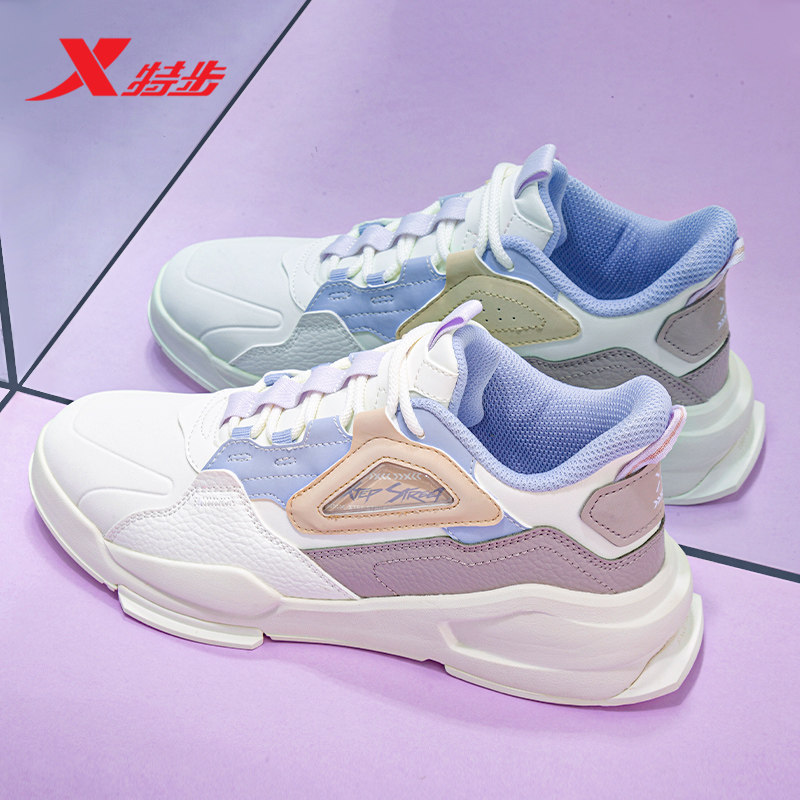 特步女鞋休闲鞋2026夏季新款官方旗舰正品板鞋皮面防水运动休闲鞋