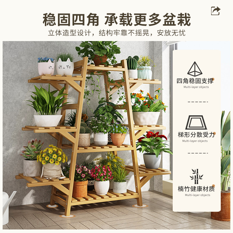 客厅花架子落地式阳台置物架收纳花盆多肉实木小户型装饰盆栽架子