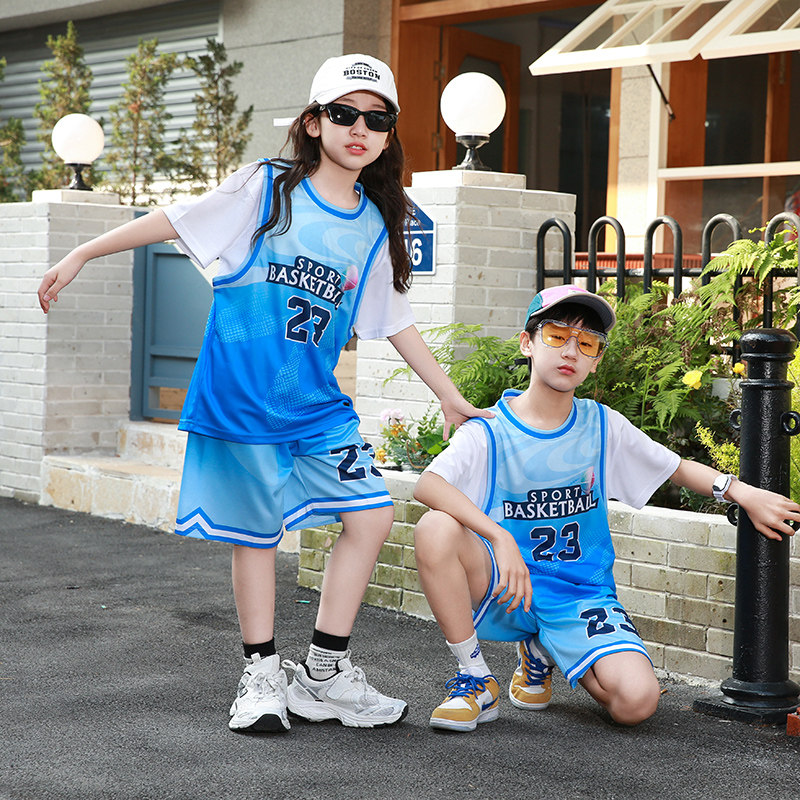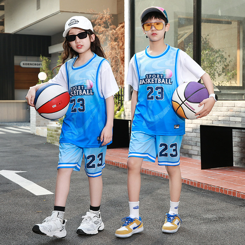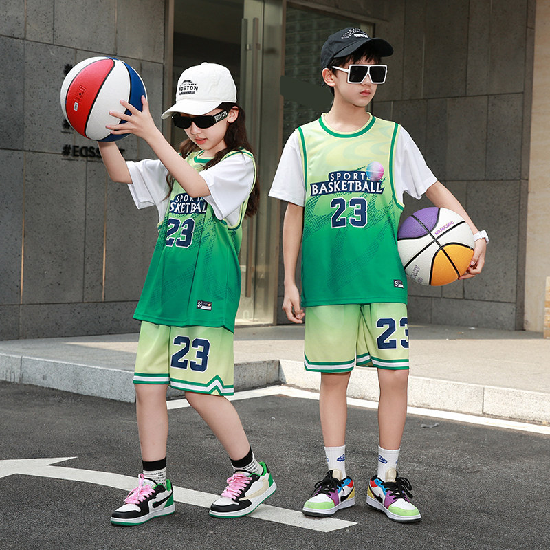 小孩篮球运动套装男童夏季宝宝幼儿园六一小童表演服绿色23号球衣