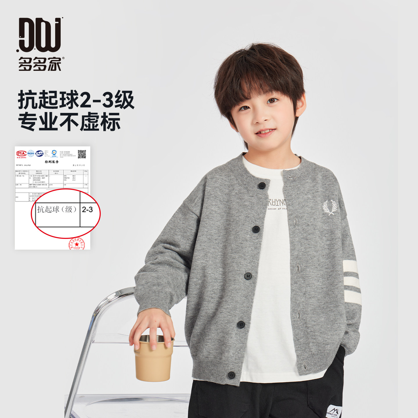 多多家男童针织开衫外套春秋款2026新款儿童中大童学院风刺绣毛衣