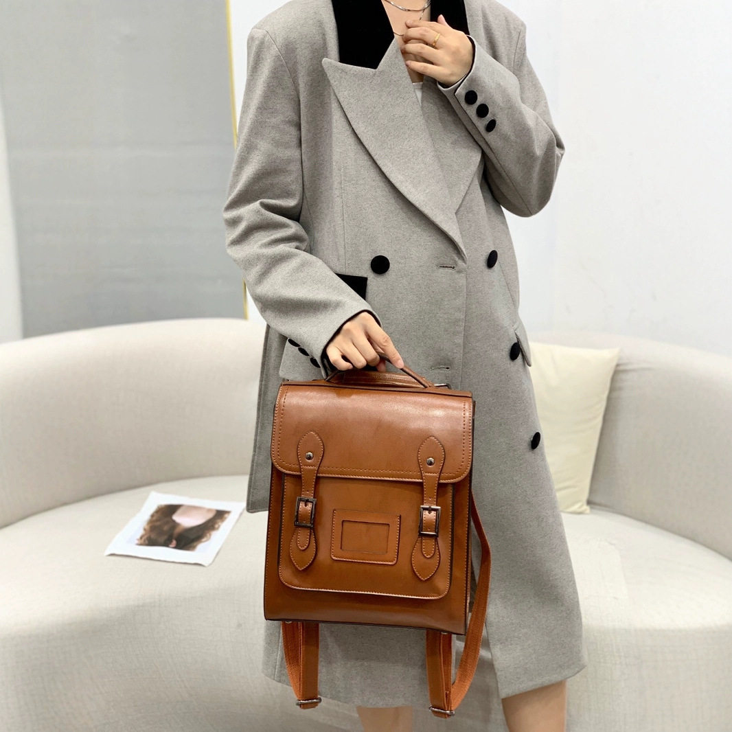 新款牛皮双肩包女士真皮女包时尚通勤学院风大容量背包书包妈咪