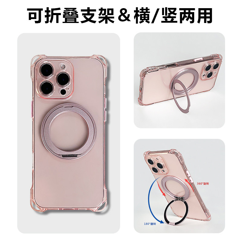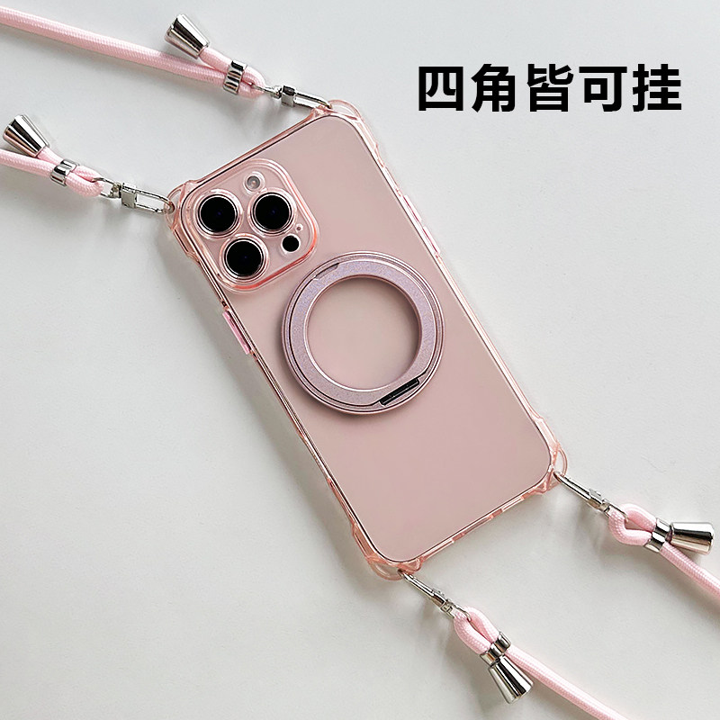 适用iphone17promax手机壳新款苹果16旋转磁吸支架带挂绳15plus保护套全包硅胶高级感13防摔斜跨脖子可肩背12
