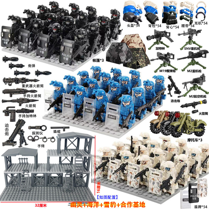 军事特种兵积木警察小人积木人偶特种军积木益智玩具乐高人仔玩具