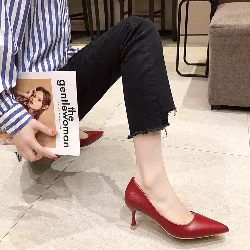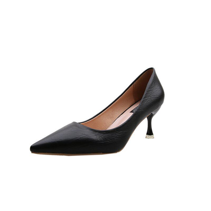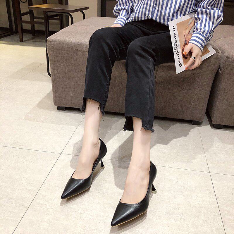 2025春夏季新款百搭单鞋尖头细跟职业外穿百搭一脚蹬浅口高跟鞋女