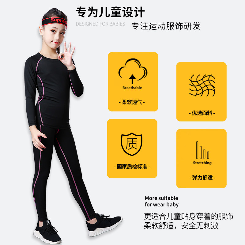 儿童篮球服训练服女童内搭足球服滑雪季打底紧身衣速干衣运动套装