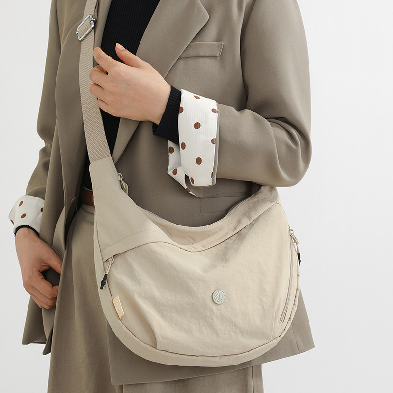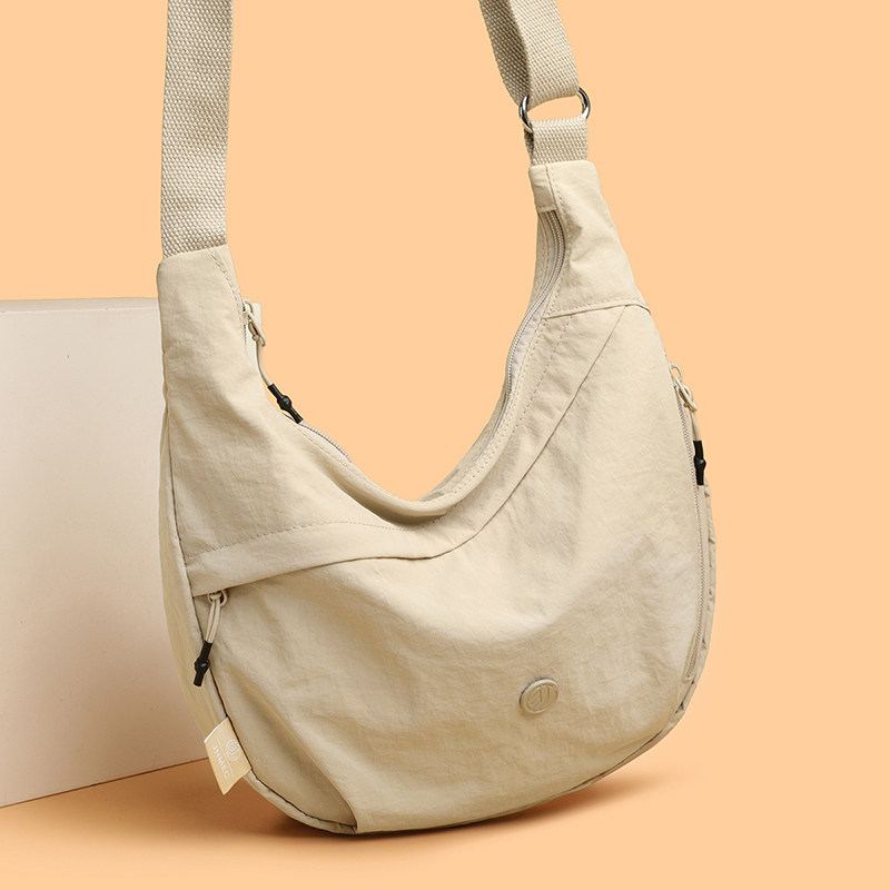 超轻便斜挎包女大容量休闲百搭防水尼龙布单肩包上班通勤饺子包