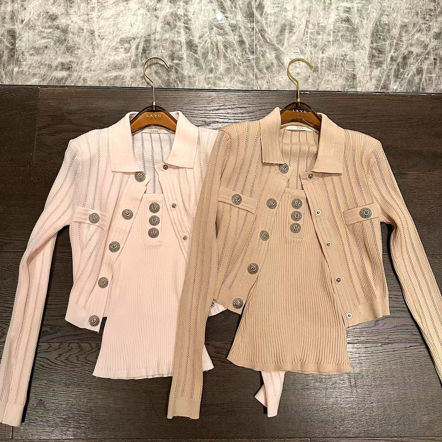 LXYG2026早春新款小香风金属扣显瘦针织开衫+吊带背心打底两件套