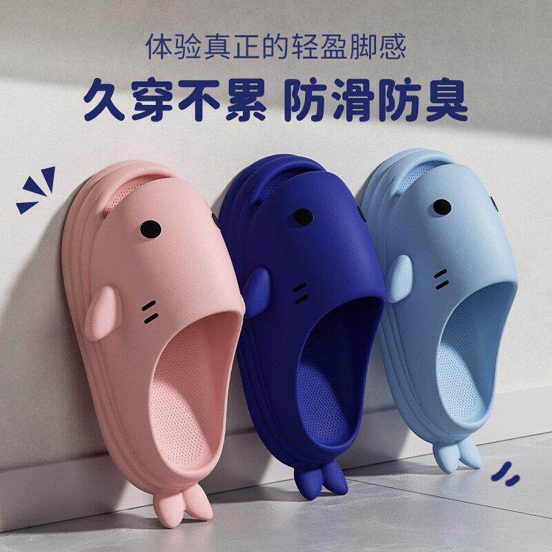 儿童拖鞋女童男童夏季居家防滑外穿洞洞鞋防臭软底卡通鲨鱼中大童